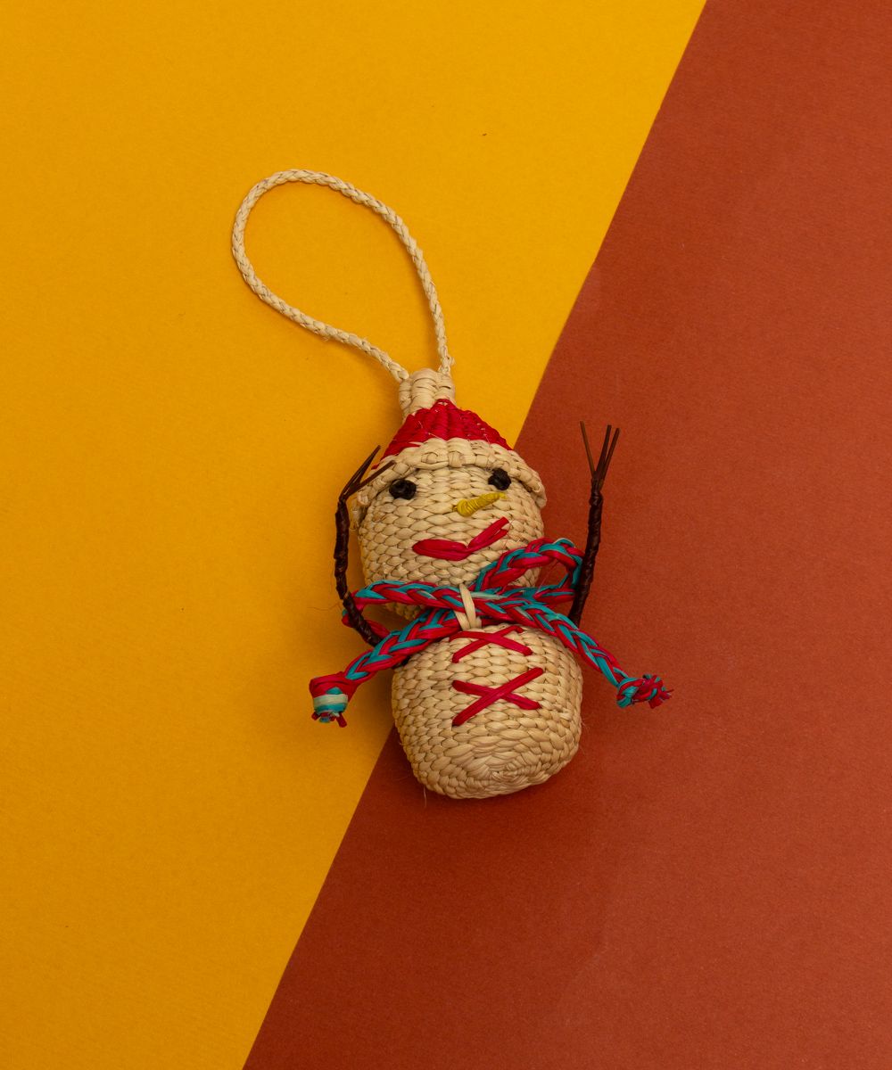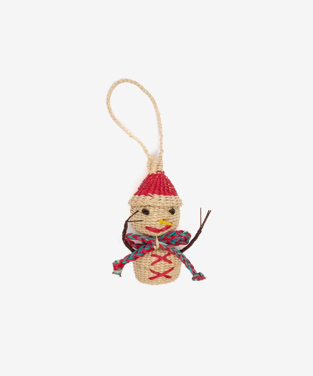 Nuestros adornos están hechos a mano por artesanas utilizando la técnica de tejido en iraca, típica de la tradición colombiana. La iraca, o paja toquilla, es una fibra natural que proviene de la “Carludovica palmata”, de cuyas hojas se obtienen unos finos hilos que son teñidos para darles color. Una vez secos, los artesanos entretejen los hilos con los diferentes colores para crear estos adornos de navidad.