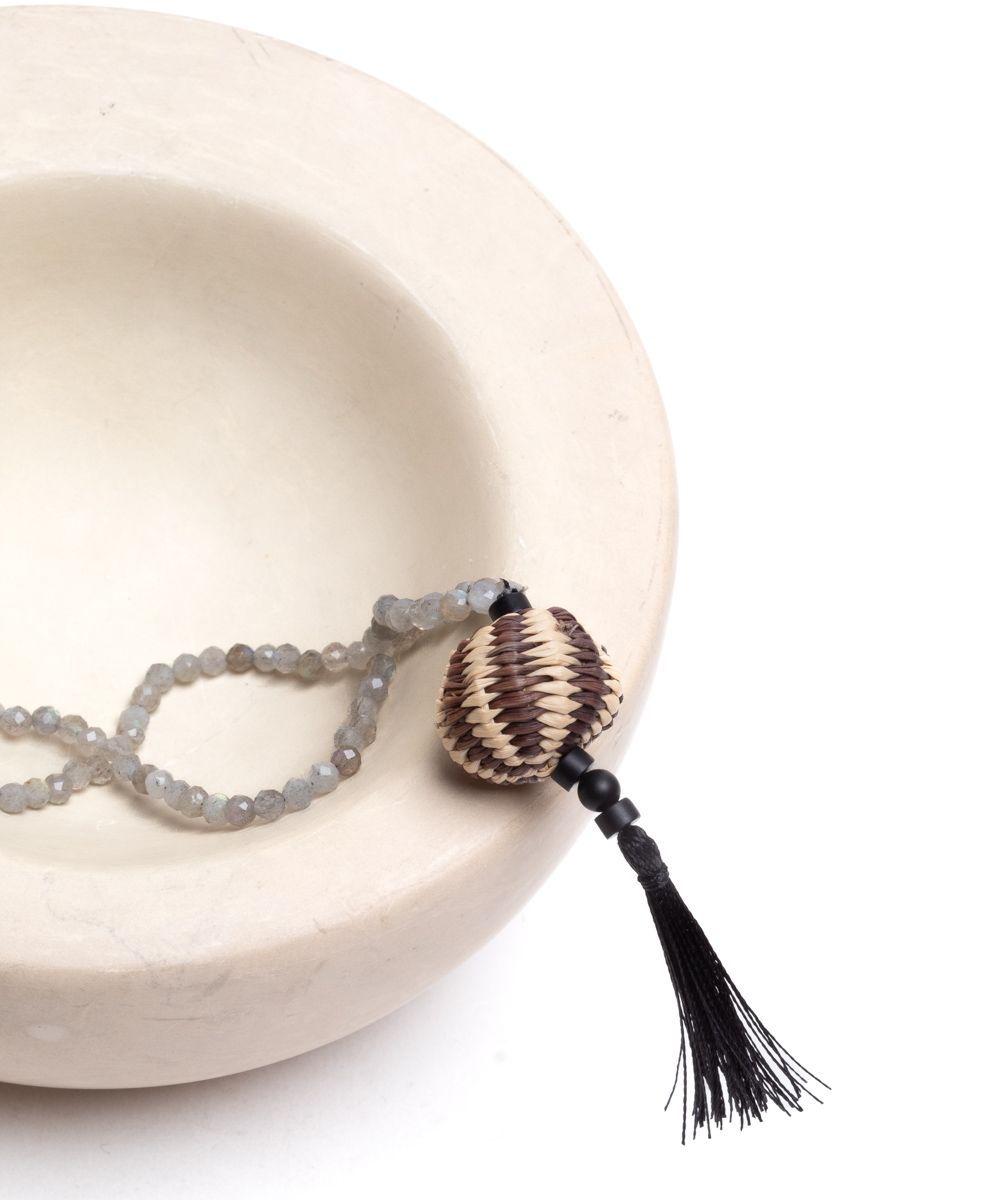 Delicado y femenino, un complemento con un toque étnico que rematará cualquier look, tanto en verano como en invierno. Este diseño exclusivo de Guanábana está inspirado en los adornos tradicionales de las comunidades indígenas. Para ese toque especial, recuperamos los pompones Wayuu y los combinamos con gemas semipreciosas. Nuestro consejo: puedes combinar collares de diferentes largos para crear tu propio conjunto. Nuestro consejo: puedes combinar collares de diferentes largos para crear tu propio conjunto.