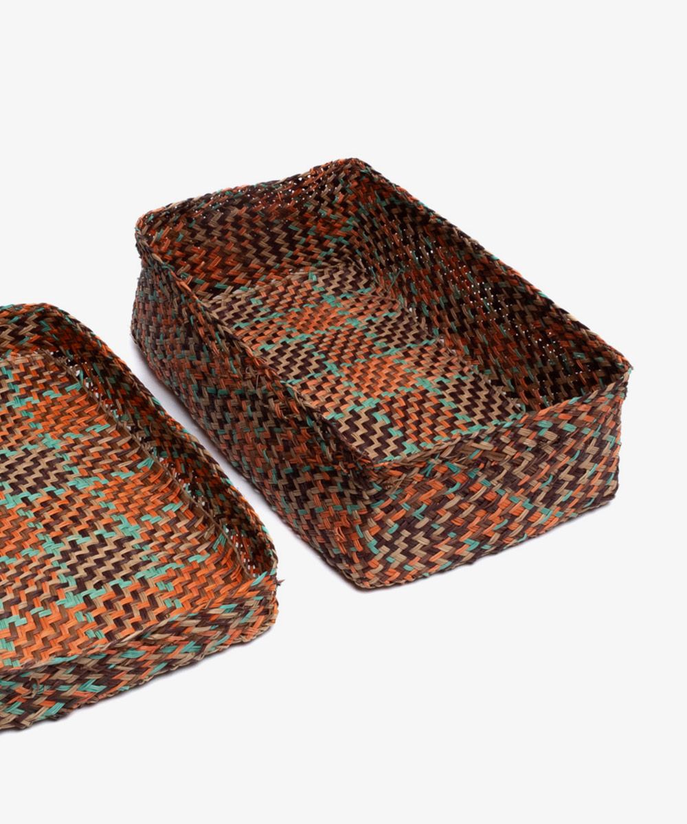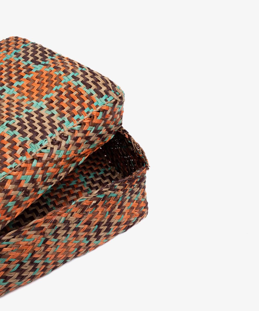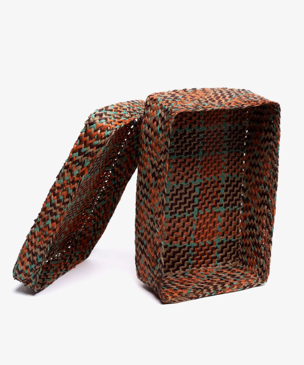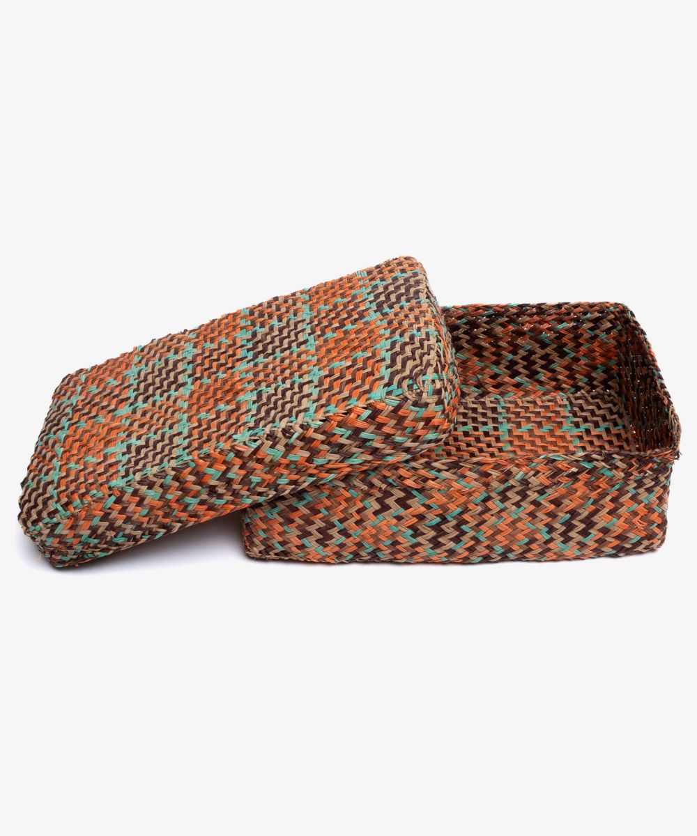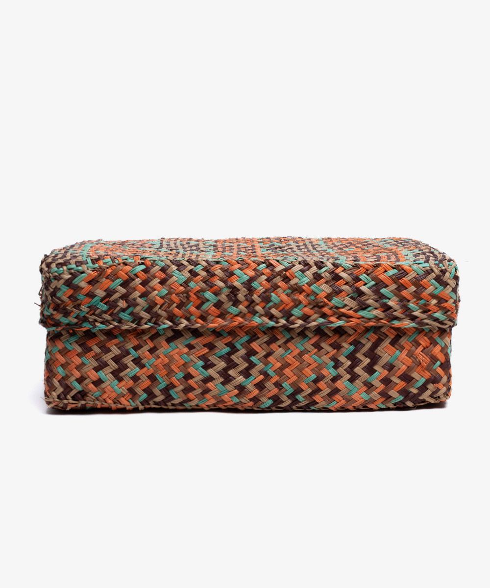 Nuestros complementos para casa están hechos a mano por artesanas utilizando la técnica de tejido en iraca, típica de la tradición colombiana. La iraca, o paja toquilla, es una fibra natural que proviene de la “Carludovica palmata”, de cuyas hojas se obtienen unos finos hilos que son teñidos para darles color. Una vez secos, los artesanos entretejen los hilos con los diferentes colores para crear en este caso, nuestras cajas. Puedes utilizarla para guardar papeles, cubiertos, servilletas, lapices...... o cualquier otra utilidad que se te ocurra.Para la limpieza se aconseja utilizar un paño húmedo. No es lavable.