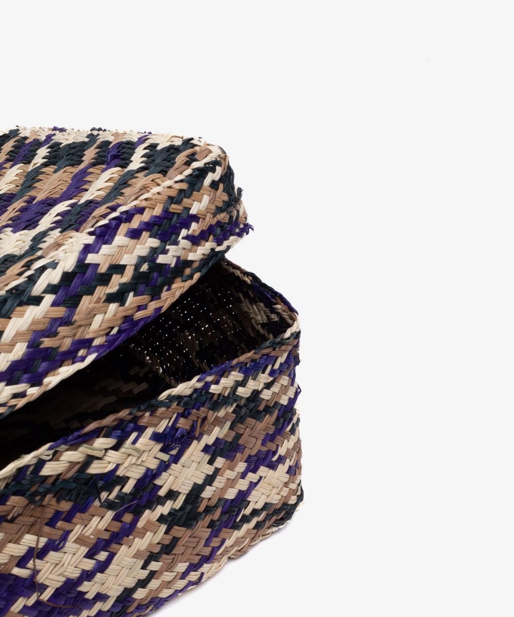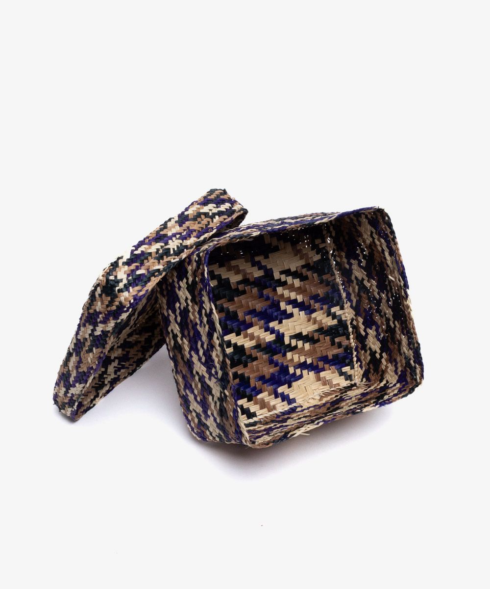 Nuestros complementos para casa están hechos a mano por artesanas utilizando la técnica de tejido en iraca, típica de la tradición colombiana. La iraca, o paja toquilla, es una fibra natural que proviene de la “Carludovica palmata”, de cuyas hojas se obtienen unos finos hilos que son teñidos para darles color. Una vez secos, los artesanos entretejen los hilos con los diferentes colores para crear en este caso, nuestras cajas. Puedes utilizarla para guardar papeles, cubiertos, servilletas, lapices...... o cualquier otra utilidad que se te ocurra.Para la limpieza se aconseja utilizar un paño húmedo. No es lavable.
