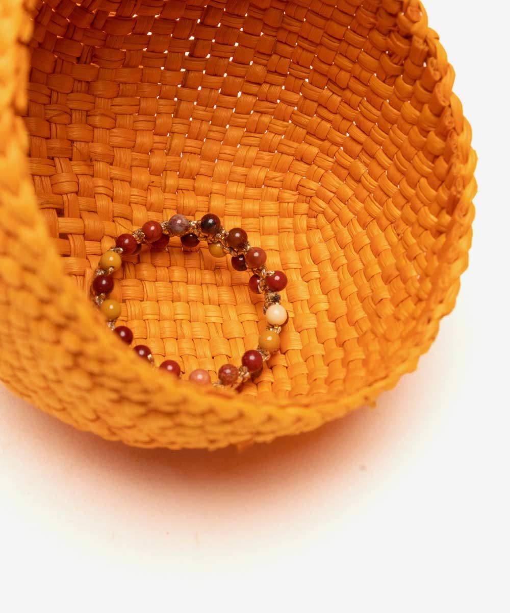 Nuestros complementos para casa están hechos a mano por artesanas utilizando la técnica de tejido en iraca, típica de la tradición colombiana. La iraca, o paja toquilla, es una fibra natural que proviene de la “Carludovica palmata”, de cuyas hojas se obtienen unos finos hilos que son teñidos para darles color. Una vez secos, los artesanos entretejen los hilos con los diferentes colores para crear nuestros bowls. Usos diferentes: Utilízala para poner el pan, tus joyas, mostrar tus aperitivos, como accesorio de baño o cualquier otra cosa que se te ocurra.Para la limpieza se aconseja utilizar un paño húmedo. No es lavable. MEDIDAS APROXIMADAS ALTURA 8,5CM diametro: 6 cm