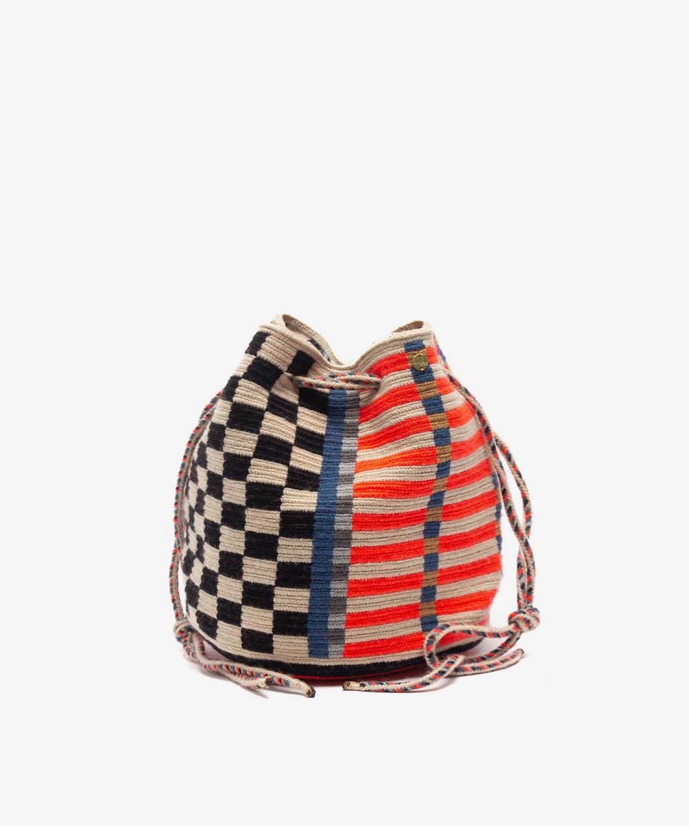 DISEÑADO EN MADRID - 100% HECHO A MANO POR ARTESANAS EN COLOMBIA. GUANÁBANA CREE EN LAS PEQUEÑAS DIFERENCIAS: LOS TAMAÑOS Y DISEÑOS PUEDEN TENER LIGERAS VARIACIONES CON EL MODELO DE LA FOTO. LAVADO A MÁQUINA EN AGUA FRÍA. Material: 100% acrílico Dimensión aproximada: Altura: 20 cm Diámetro: 20 cm Asa: 115cm