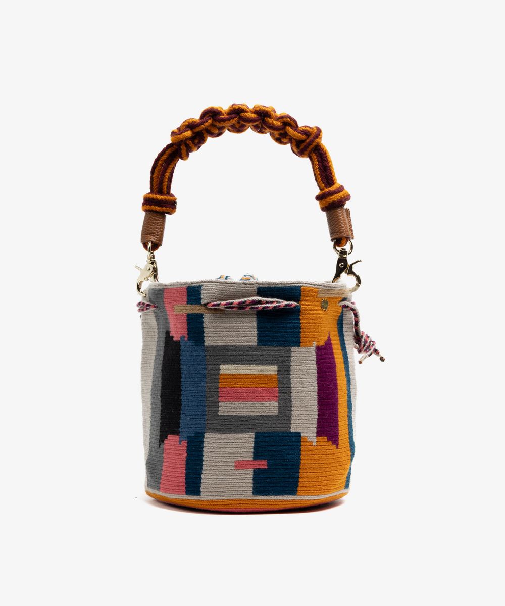 DISEÑADO EN MADRID - 100% HECHO A MANO POR ARTESANAS EN COLOMBIA. GUANÁBANA CREE EN LAS PEQUEÑAS DIFERENCIAS: LOS TAMAÑOS Y DISEÑOS PUEDEN TENER LIGERAS VARIACIONES CON EL MODELO DE LA FOTO. LAVADO A MÁQUINA EN AGUA FRÍA. Material: 100% acrílico Dimensión aproximada: Altura: 20 cm Diámetro: 20 cm Asa: 115cm