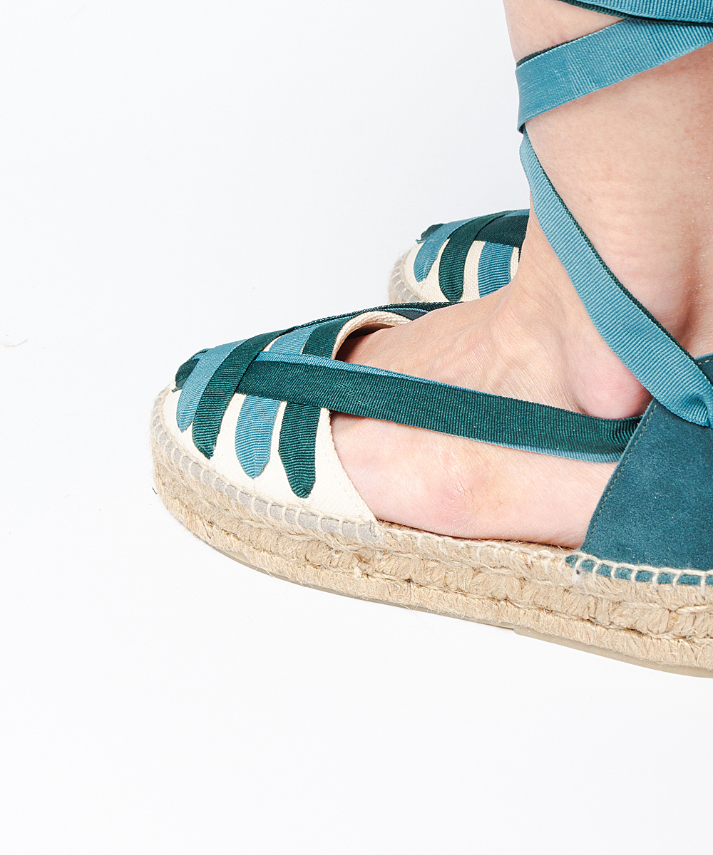 Alpargatas, cinta cruzada VERDE ESMERALDA & TURQUESA