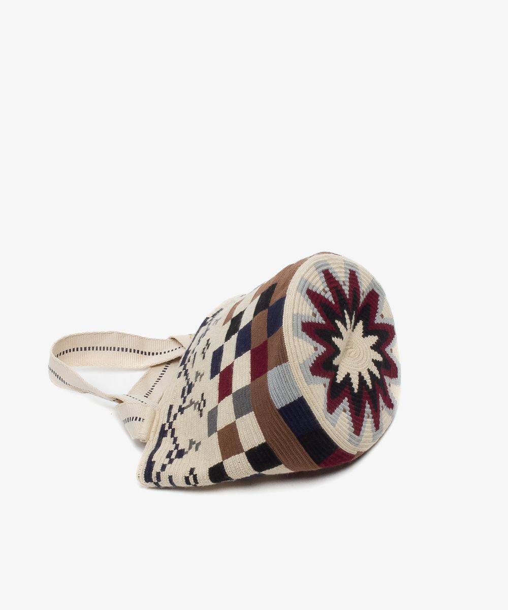 Un viaje al Japón de Almudena Espinosa fue la inspiración para el diseño de este bolso, modelo exclusivo de GUANABANA. Por primera vez se consumaron la tradición ancestral de los tejidos Wayúu colombianos con una estética y sabor oriental. Las asas de este bolso son desiguales, otorgándole una originalidad encantadora a nuestros clientes por la paz que transmite y su comodidad. Todos los bolsos llevan nuestro característico sello en bronce con el leitmotiv de GUANABANA: BE POSITIVE.