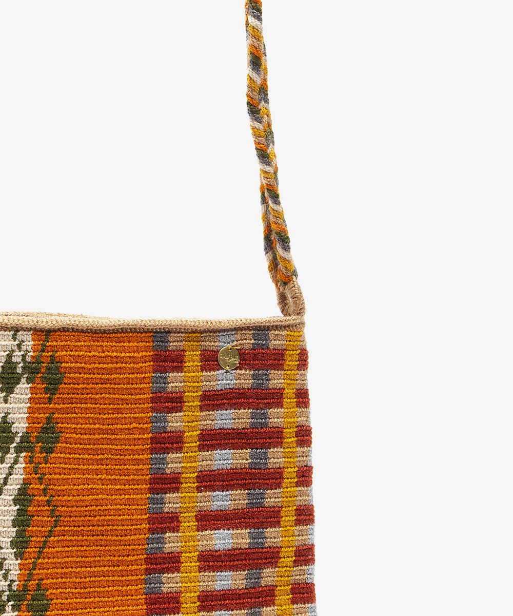 Always looking for innovation, Guanábana combines the hand-weaving tradition with the urban life through this bag, designed in Madrid and hand-crocheted in Colombia. Finished with a bronze tag with our mantra so you do not forget it: BE POSITIVE. This bag is exclusively designed by Guanábana. Our advice: if you fall in love with a Linda bag. don’t miss it, as it is a limited production model. The base of the bag may not be the same as the one shown in the photo. The artisans weave the bases using their own designs, so each base is unique and works as their personal trademark.