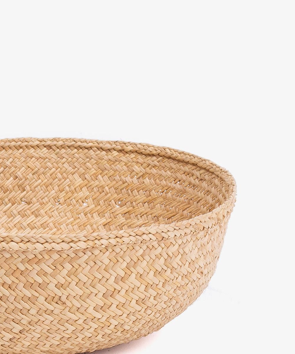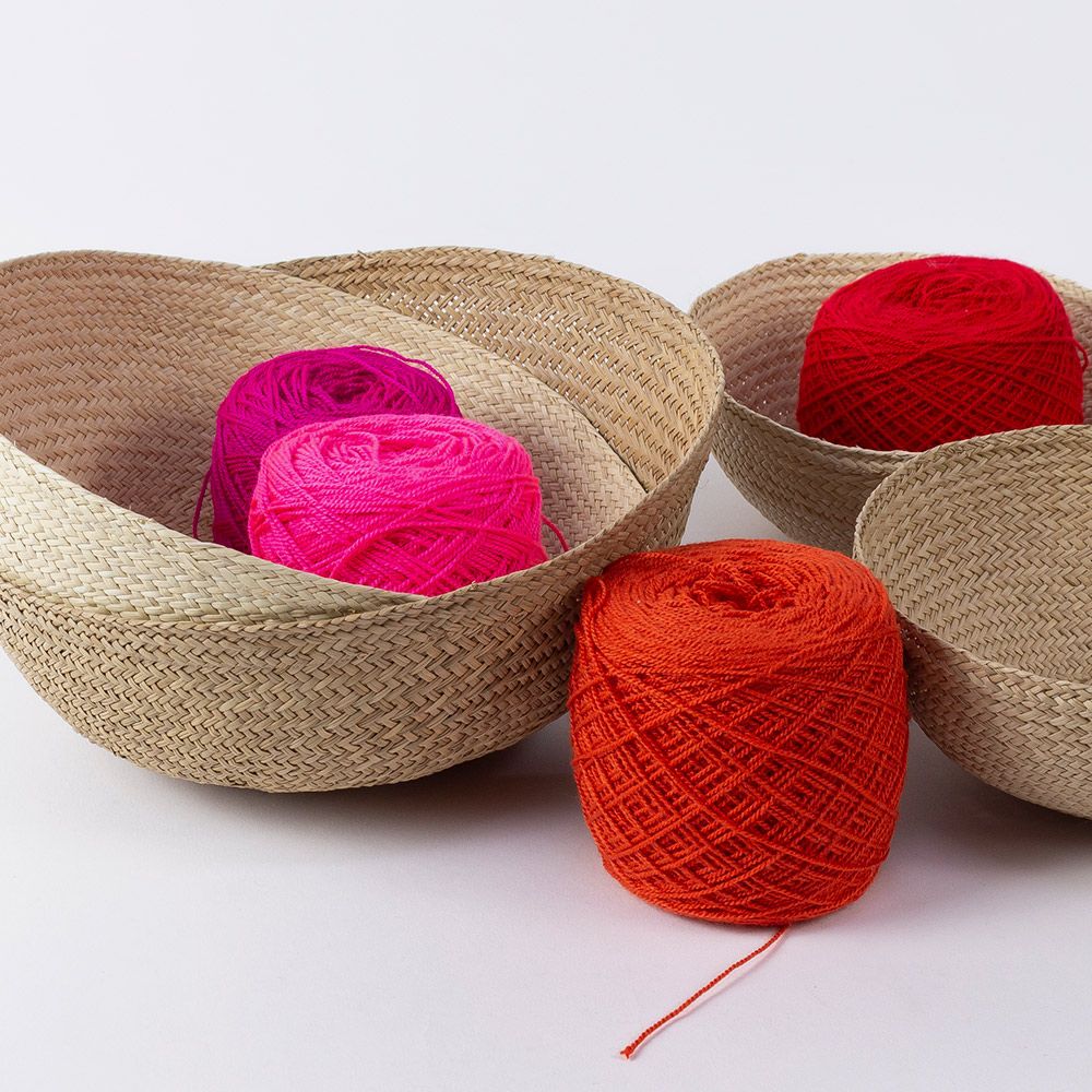 Nuestros complementos para casa están hechos a mano por artesanas utilizando la técnica de tejido en iraca, típica de la tradición colombiana. La iraca, o paja toquilla, es una fibra natural que proviene de la “Carludovica palmata”, de cuyas hojas se obtienen unos finos hilos que son teñidos para darles color. Una vez secos, los artesanos entretejen los hilos con los diferentes colores para crear nuestros bowls. Usos diferentes: Utilízala para poner el pan, tus joyas, mostrar tus aperitivos, como accesorio de baño o cualquier otra cosa que se te ocurra.Para la limpieza se aconseja utilizar un paño húmedo. No es lavable.