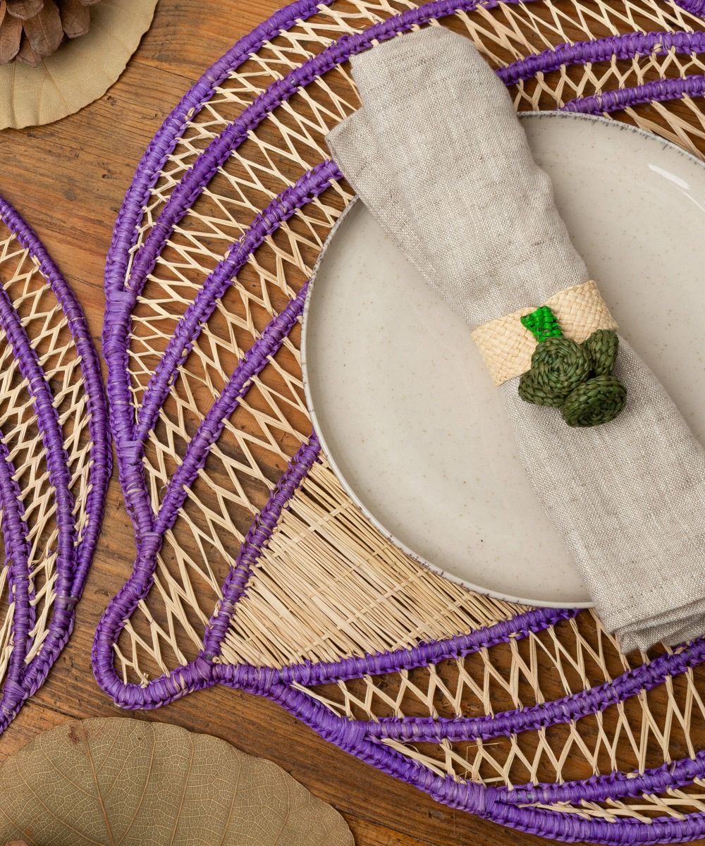 Nuestros complementos, en este caso los INDIVIDUALES de frutas y verduras, están hechos a mano por artesanas utilizando la técnica de tejido en iraca, típica de la tradición colombiana. La iraca, o paja toquilla, es una fibra natural que proviene de la “Carludovica palmata”, de cuyas hojas se obtienen unos finos hilos que son teñidos para darles color. Una vez secos, los artesanos entretejen los hilos con los diferentes colores para crear nuestros INDIVIDUALES. Usos diferentes: Utilízalo para decorar tu mesa como individual o centro de mesa. Para la limpieza se aconseja utilizar un paño húmedo. No es lavable.