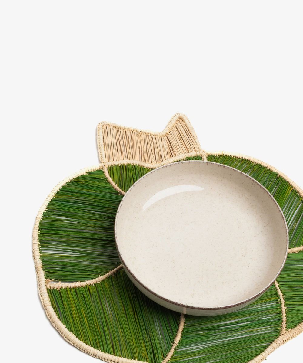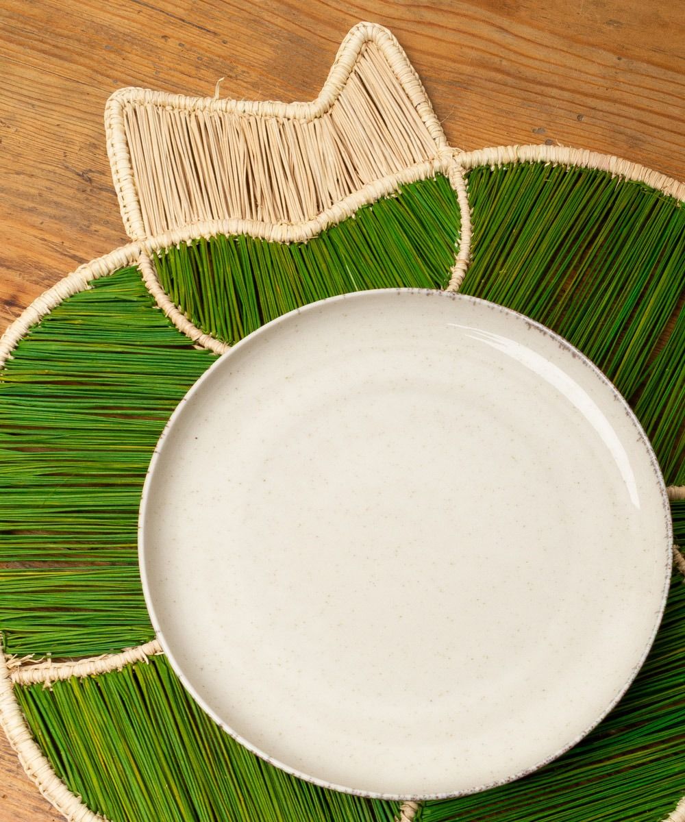 Nuestros complementos, en este caso los INDIVIDUALES de frutas y verduras, están hechos a mano por artesanas utilizando la técnica de tejido en iraca, típica de la tradición colombiana. La iraca, o paja toquilla, es una fibra natural que proviene de la “Carludovica palmata”, de cuyas hojas se obtienen unos finos hilos que son teñidos para darles color. Una vez secos, los artesanos entretejen los hilos con los diferentes colores para crear nuestros INDIVIDUALES. Usos diferentes: Utilízalo para decorar tu mesa como individual o centro de mesa. Para la limpieza se aconseja utilizar un paño húmedo. No es lavable.