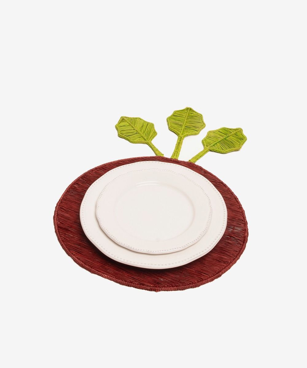 Nuestros complementos, en este caso los INDIVIDUALES de frutas y verduras, están hechos a mano por artesanas utilizando la técnica de tejido en iraca, típica de la tradición colombiana. La iraca, o paja toquilla, es una fibra natural que proviene de la “Carludovica palmata”, de cuyas hojas se obtienen unos finos hilos que son teñidos para darles color. Una vez secos, los artesanos entretejen los hilos con los diferentes colores para crear nuestros INDIVIDUALES. Usos diferentes: Utilízalo para decorar tu mesa como individual o centro de mesa. Para la limpieza se aconseja utilizar un paño húmedo. No es lavable.