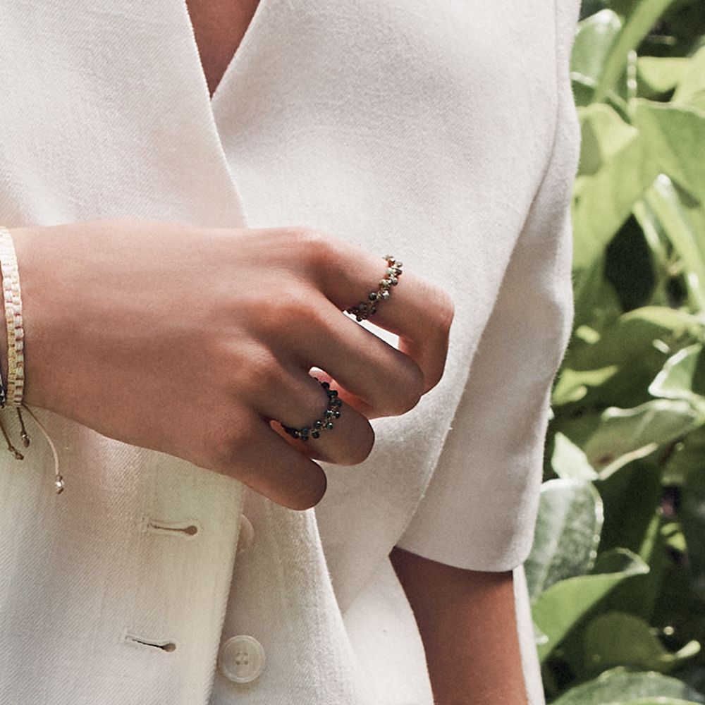 Guanábana presents its new ring collection and make it a bright and colorful accessory, with semiprecious gemstone beads that bring the sophisticate vibe to this ring. The POLUX ring is hand woven by colombian artisans.