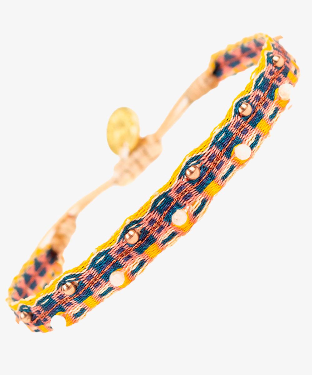 Guanábana da un giro a su tradicional ARGANTINA y la convierte en un accesorio brillante y colorido, con cuentas de piedras semipreciosas que aportan sofisticación a la pulsera. La argantina ALAMEIN está tejida a mano por artesanas usando un telar manual y acabada con un cierre ajustable y una medallita en bronce con nuestro mantra para que no lo olvides: BE POSITIVE.