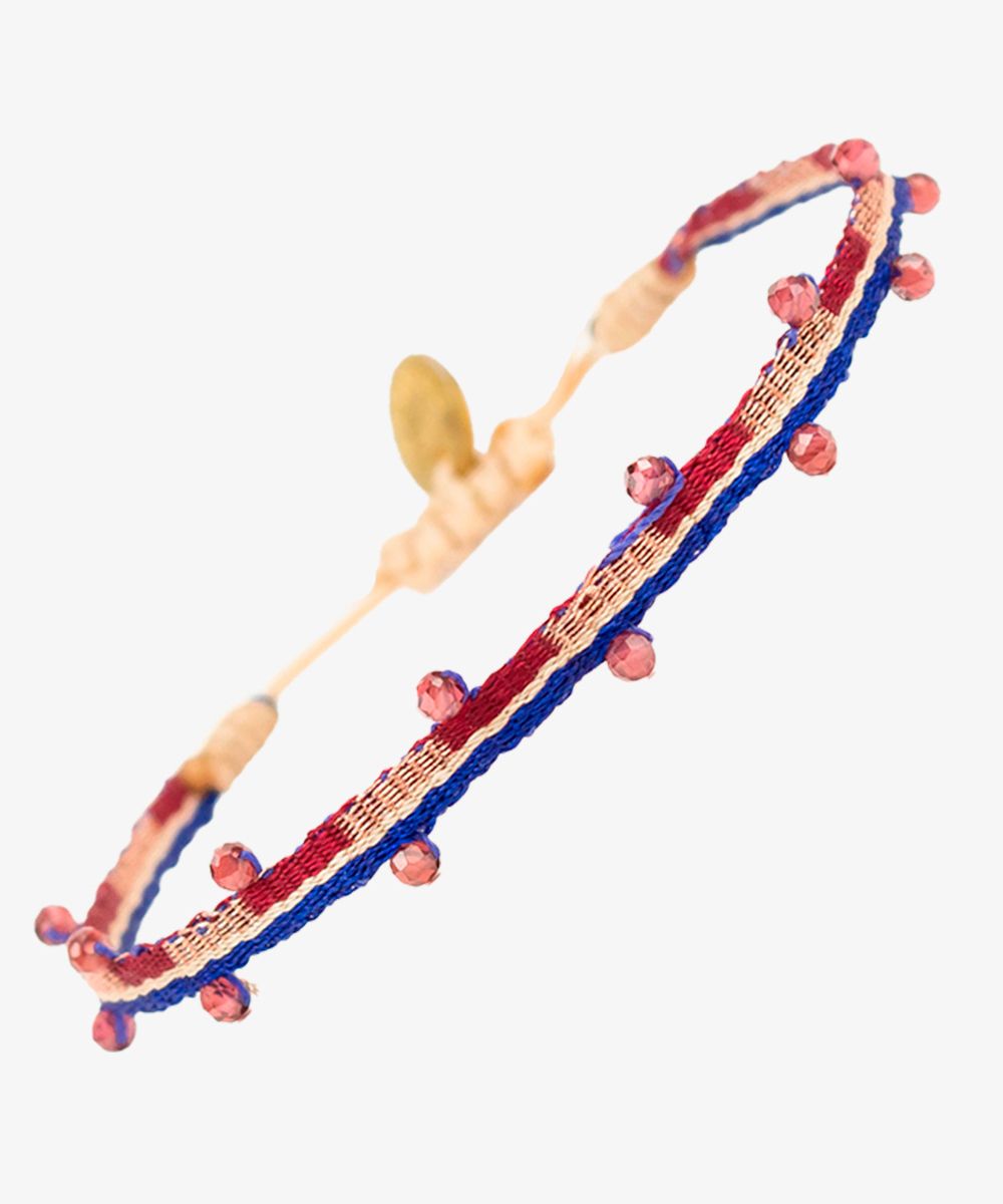Guanábana da un giro a su tradicional ARGANTINA y la convierte en un accesorio brillante y colorido, con cuentas de piedras semipreciosas que aportan sofisticación a la pulsera. La argantina ALAMEIN está tejida a mano por artesanas usando un telar manual y acabada con un cierre ajustable y una medallita en bronce con nuestro mantra para que no lo olvides: BE POSITIVE. Piedra: adornada con cuentas