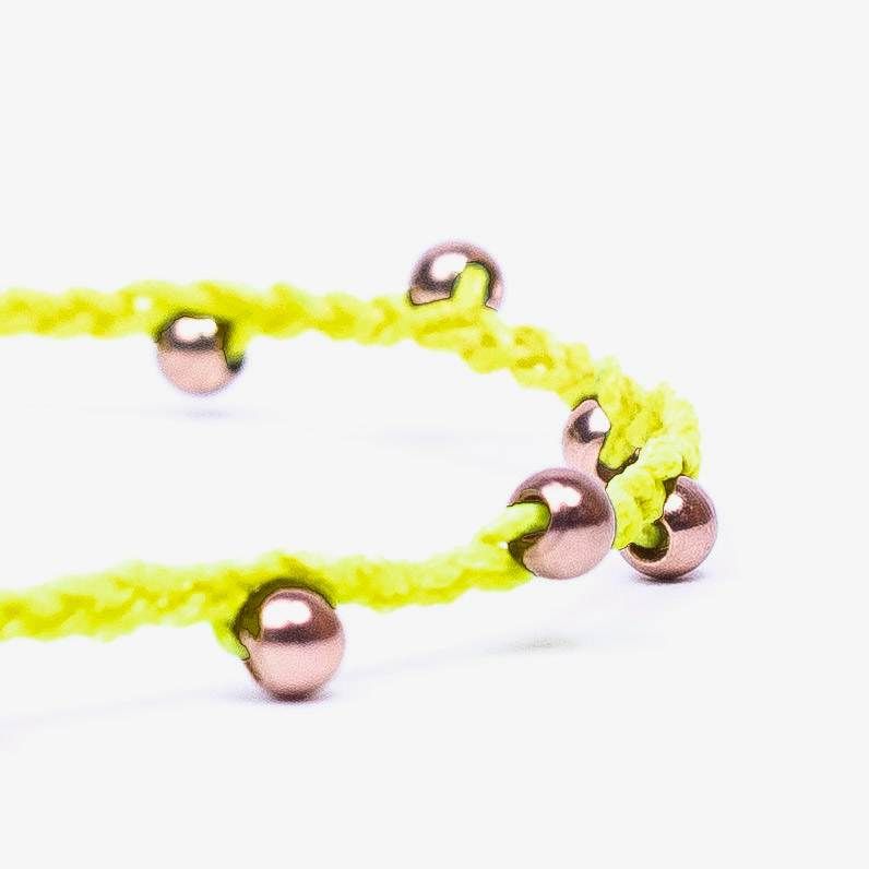 Elegante y casual al mismo tiempo: así es la pulsera GIFT, diseñada en exclusiva por el equipo de Guanábana en Madrid. Esta pulsera, disponible en varios tamaños y colores, está tejida a mano en macramé por artesanas y decorada con cuentas de latón bañadas en oro rosa, con un cierre ajustable para la muñeca. Y, para que no lo olvides, la pulsera incluye una medallita en bronce con nuestro mantra: BE POSITIVE. Nuestro consejo: combínala con otras pulseras Guanábana para crear tu propio set.