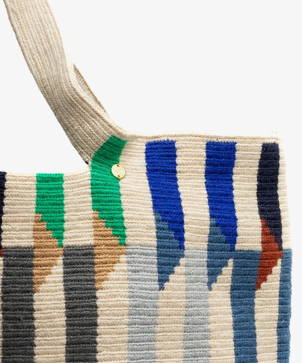 Siempre buscando la innovación, Guanábana combina la tradición del tejido a mano con la vida urbana a través de este bolso, diseñado en Madrid y tejido a ganchillo a mano en Colombia. Este modelo surgió como una revolución entre los artesanos Wayuu, quienes están acostumbrados a trabajar con bolsos de base redonda. Terminado con una etiqueta de bronce con nuestro mantra para que no lo olvides: SEA POSITIVO. Este bolso está diseñado exclusivamente por Guanábana.
