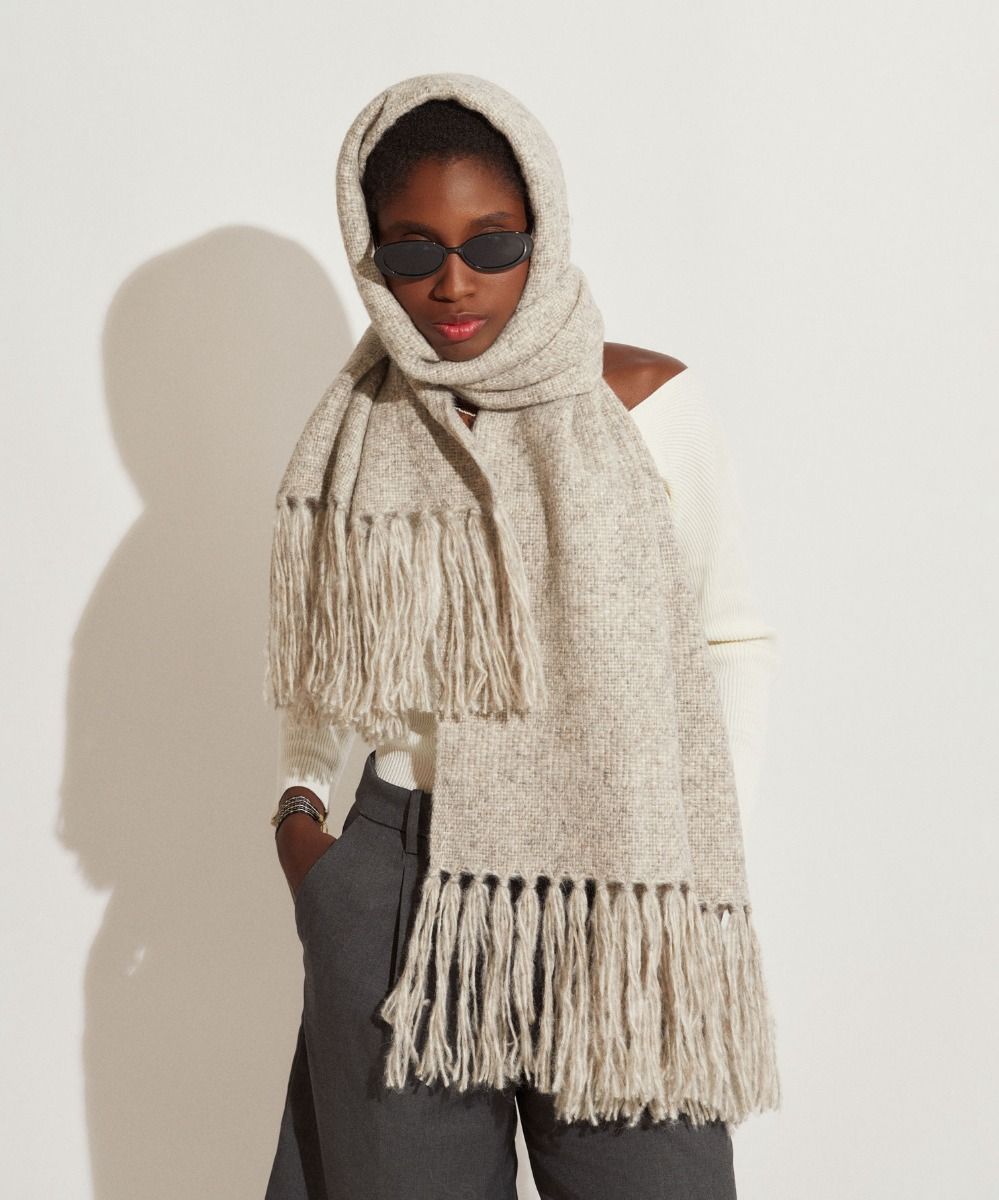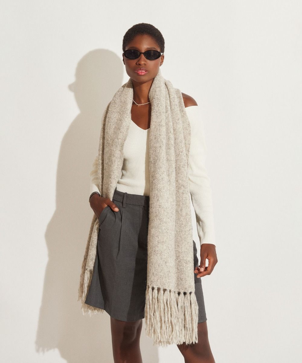 Descubre la suavidad incomparable de este shawl de baby alpaca, tejido a mano en antiguos telares peruanos.