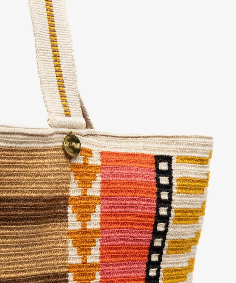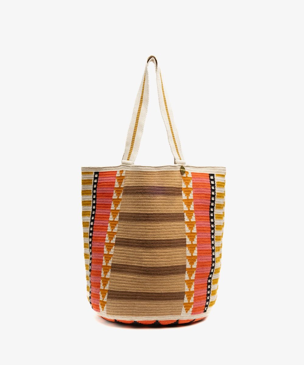 DISEÑADO EN MADRID - 100% HECHO A MANO POR ARTESANAS EN COLOMBIA. GUANÁBANA CREE EN LAS PEQUEÑAS DIFERENCIAS: LOS TAMAÑOS Y DISEÑOS PUEDEN TENER LIGERAS VARIACIONES CON EL MODELO DE LA FOTO. LAVADO A MÁQUINA EN AGUA FRÍA. Material: 100% acrílico Dimensión aproximada: Altura: 38 cm Diámetro: 31 cm Asa: 54 cm