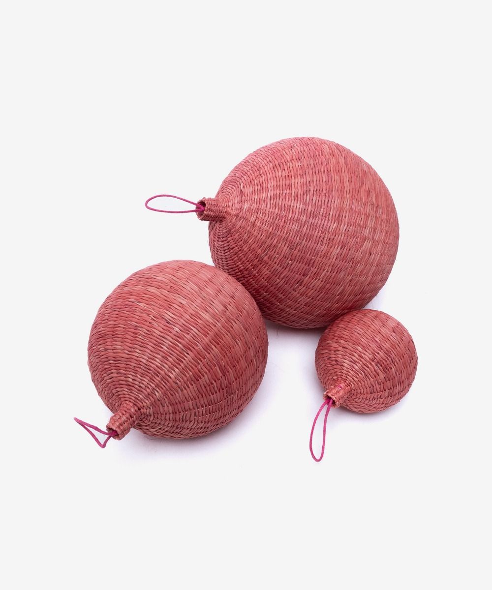 Nuestros ornamentos, bolas de Navidad, están hechas a mano por artesanas utilizando la técnica de tejido en iraca, típica de la tradición colombiana. La iraca, o paja toquilla, es una fibra natural que proviene de la “Carludovica palmata”, de cuyas hojas se obtienen unos finos hilos que son teñidos para darles color. Una vez secos, los artesanos entretejen los hilos con los diferentes colores para crear estas bolas de navidad. Decora tu árbol de Navidad con estas bolas tan coloridas. Si se caen no se rompen, ideales para casa con niños. Para la limpieza se aconseja utilizar un paño húmedo. No es lavable.