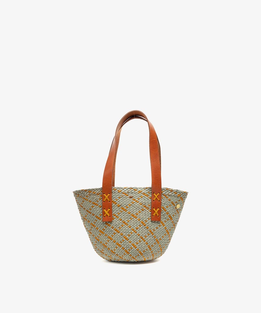 - 100% paja de iraca - Medallón de latón Dimensiones: - Altura: 14 cm - Longitud de las asas: 15 cm (5,9 pulgadas) - Diámetro de la abertura: 17 cm Cada bolso es único y está hecho a mano, por lo que puede haber ligeras variaciones de forma o tamaño. No se puede lavar a máquina; lavar con un paño húmedo.