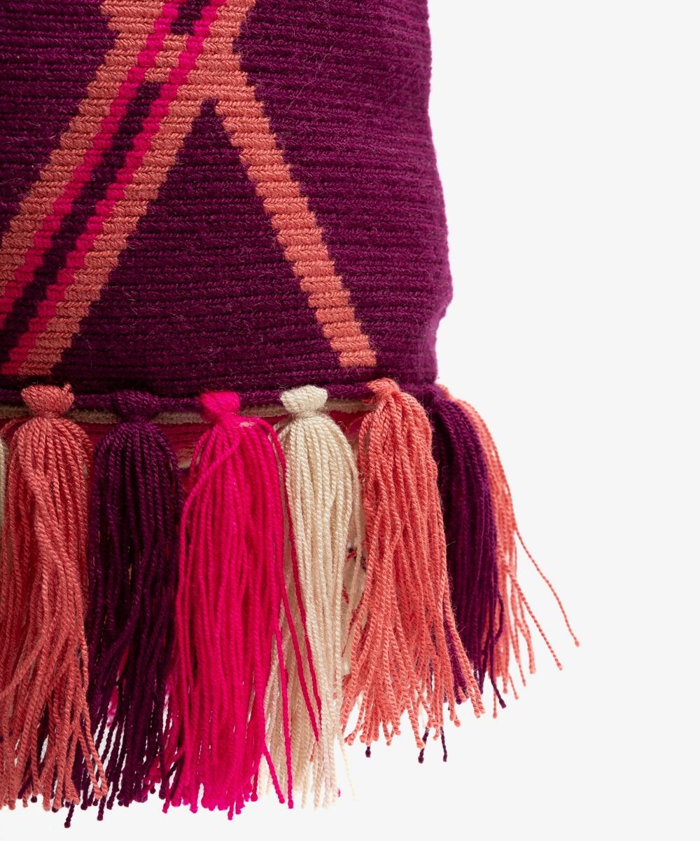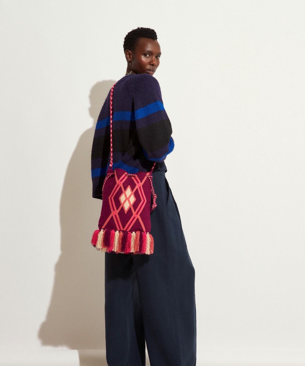DISEÑADO EN MADRID - 100% HECHO A MANO POR ARTESANAS EN COLOMBIA. GUANÁBANA CREE EN LAS PEQUEÑAS DIFERENCIAS: LOS TAMAÑOS Y DISEÑOS PUEDEN TENER LIGERAS VARIACIONES CON EL MODELO DE LA FOTO. LAVADO A MÁQUINA EN AGUA FRÍA. Material: 100% acrílico Dimensión aproximada: Altura: 31 cm Diámetro: 30 cm Asa: 115cm