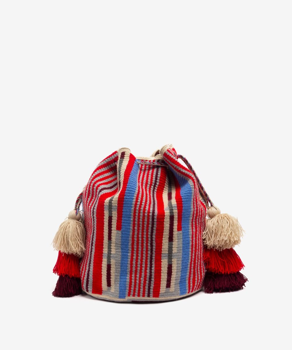 DISEÑADO EN MADRID - 100% HECHO A MANO POR ARTESANAS EN COLOMBIA. GUANÁBANA CREE EN LAS PEQUEÑAS DIFERENCIAS: LOS TAMAÑOS Y DISEÑOS PUEDEN TENER LIGERAS VARIACIONES CON EL MODELO DE LA FOTO. LAVADO A MÁQUINA EN AGUA FRÍA. Material: 100% acrílico Dimensión aproximada: Altura: 24 cm Diámetro: 24 cm Asa: 60 cm