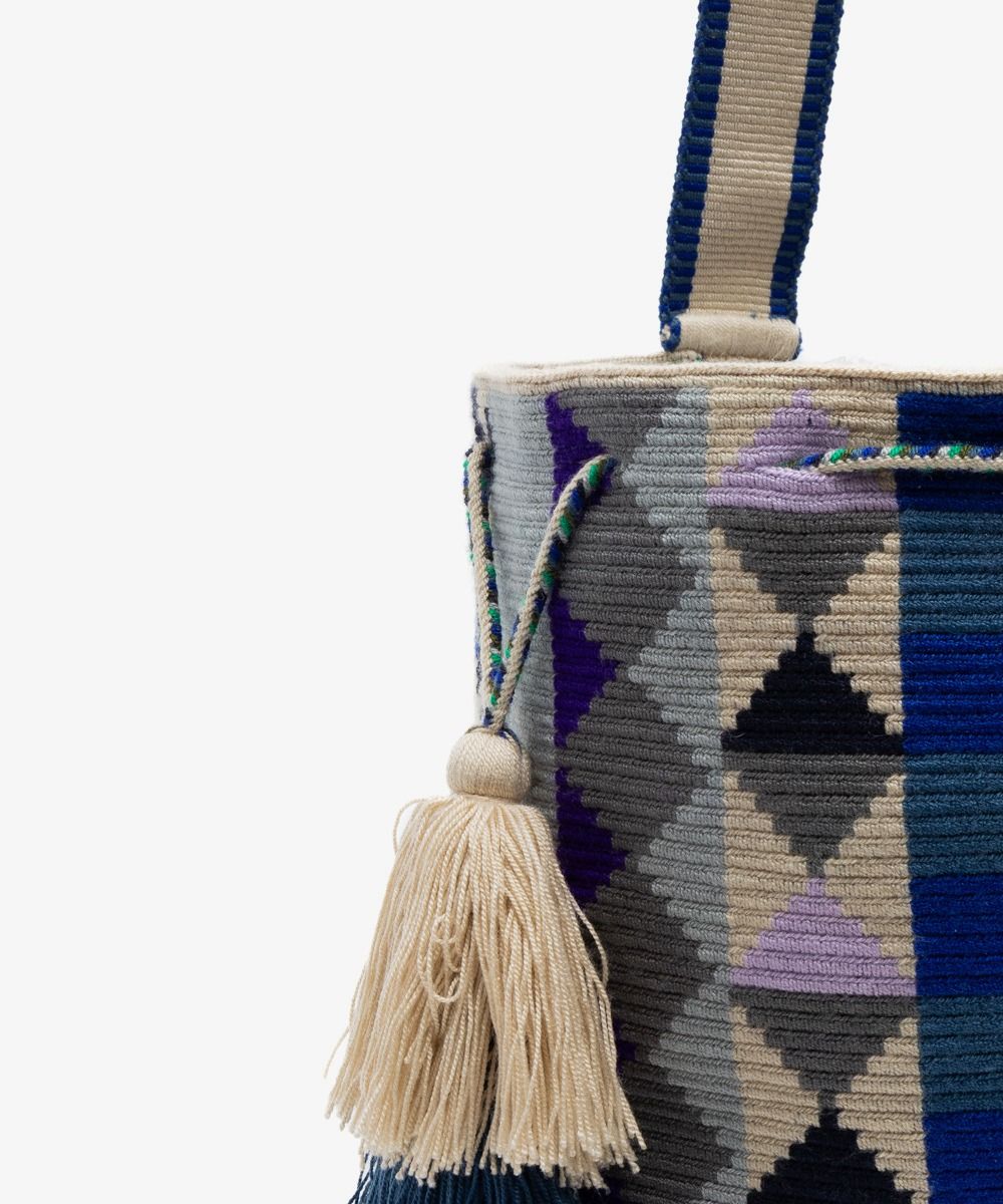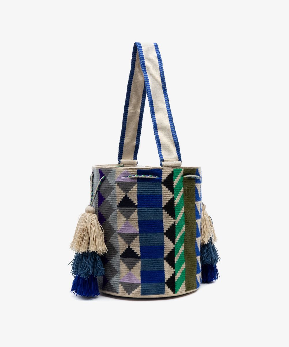 DISEÑADO EN MADRID - 100% HECHO A MANO POR ARTESANAS EN COLOMBIA. GUANÁBANA CREE EN LAS PEQUEÑAS DIFERENCIAS: LOS TAMAÑOS Y DISEÑOS PUEDEN TENER LIGERAS VARIACIONES CON EL MODELO DE LA FOTO. LAVADO A MÁQUINA EN AGUA FRÍA. Material: 100% acrílico Dimensión aproximada: Altura: 24 cm Diámetro: 24 cm Asa: 60 cm