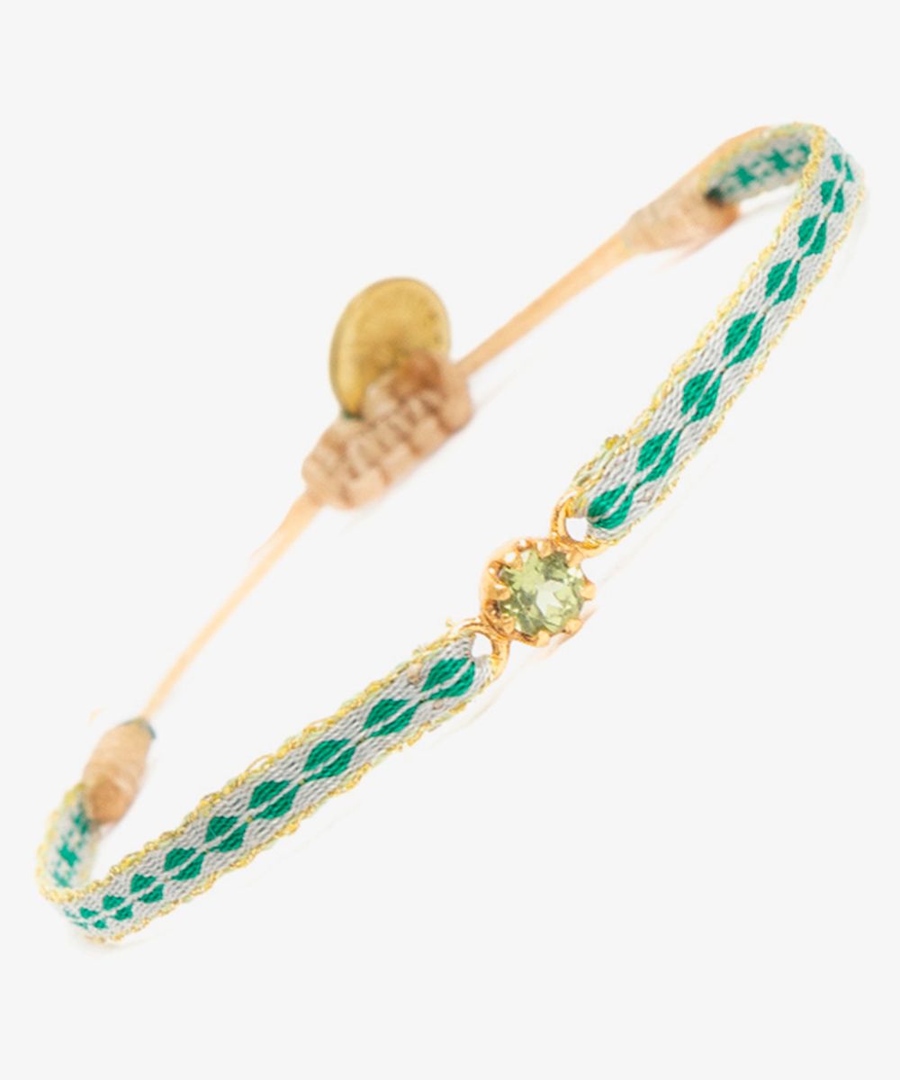 Guanábana convierte sus icónicas ARGANTINAS en una joya especial y única. Diseñada en exclusiva por el equipo de Guanábana, la argantina ANDROMEDA está tejida a mano por artesanas utilizando un telar manual y decorada con una pieza de plata bañada en oro, esta contiene una piedra semi preciosa. Tiene un cierre ajustable para que la lleves segura en tu muñeca. Y, para que no lo olvides, la pulsera incluye una medallita en bronce con nuestro mantra: BE POSITIVE. Nuestro consejo: perfecta para cualquier ocasión, es una pieza atemporal que puedes llevar sola o combinada con otras pulseras Guanábana.