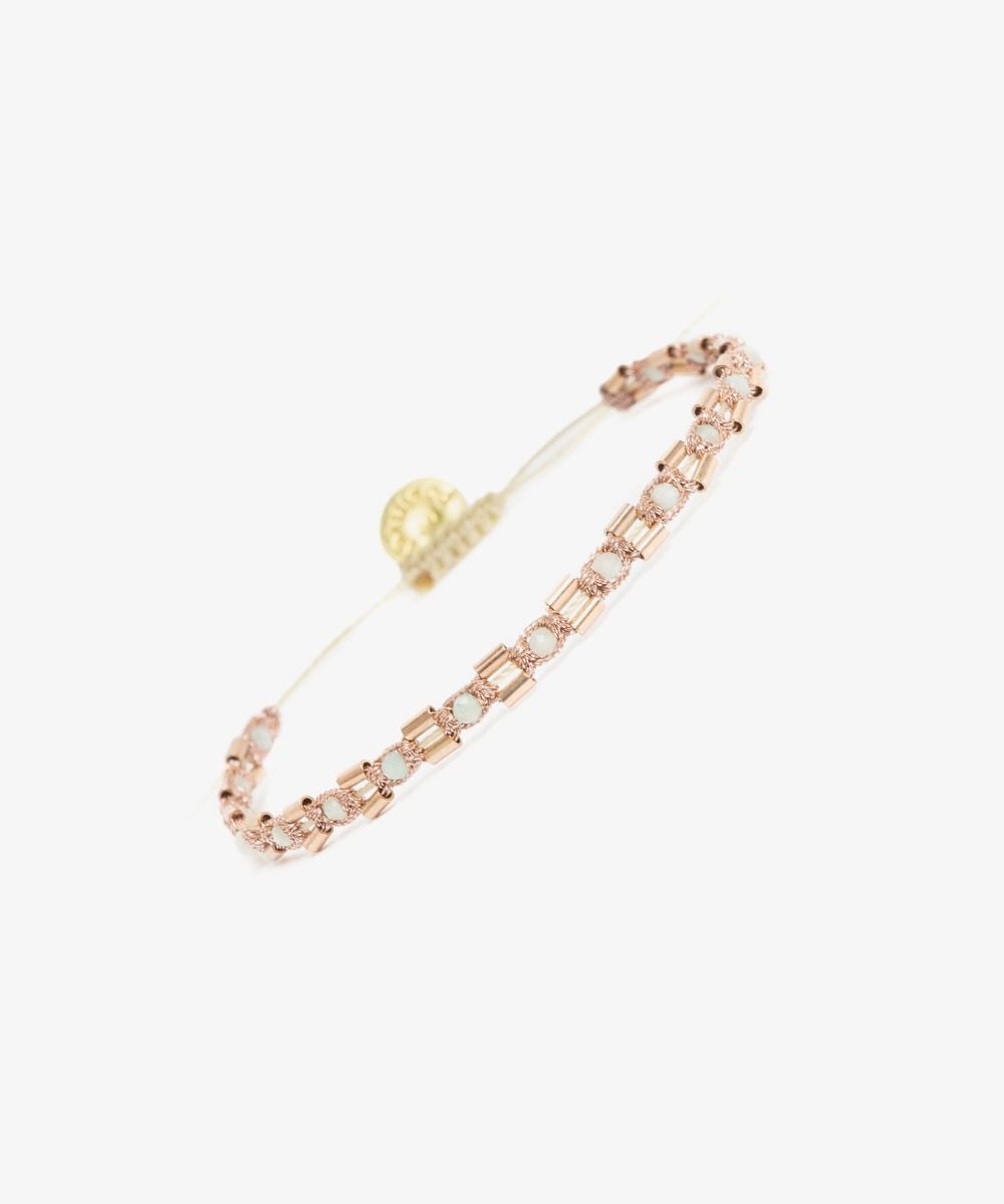 La colección Daisy transforma el diseño original de nuestras pulseras añadiendo cuentas bañadas en oro rosa, aportando un toque de elegancia a sus coloridos patrones. Creación exclusiva de Guanábana, diseñada en Madrid, esta pulsera está tejida a mano por artesanos colombianos en un telar siguiendo técnicas tradicionales. La abertura de la pulsera se ajusta para adaptarse a tu muñeca y está adornada con un medallón en el que está inscrito nuestro mantra: ¡Sé positivo!