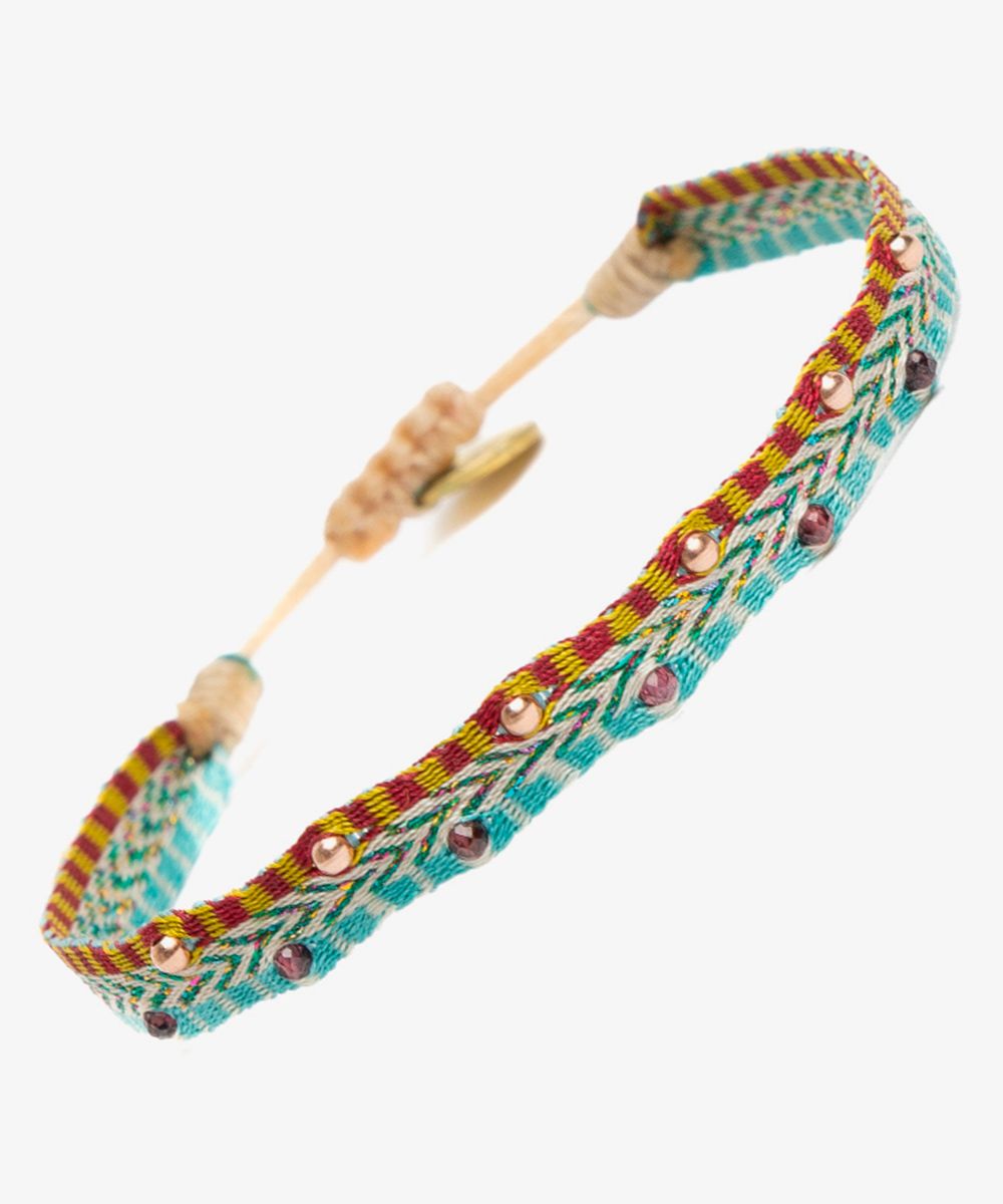 Guanábana da un giro a su tradicional ARGANTINA y la convierte en un accesorio brillante y colorido, con cuentas de piedras semipreciosas que aportan sofisticación a la pulsera. La argantina ALAMEIN está tejida a mano por artesanas usando un telar manual y acabada con un cierre ajustable y una medallita en bronce con nuestro mantra para que no lo olvides: BE POSITIVE. Piedra: adornada con cuentas