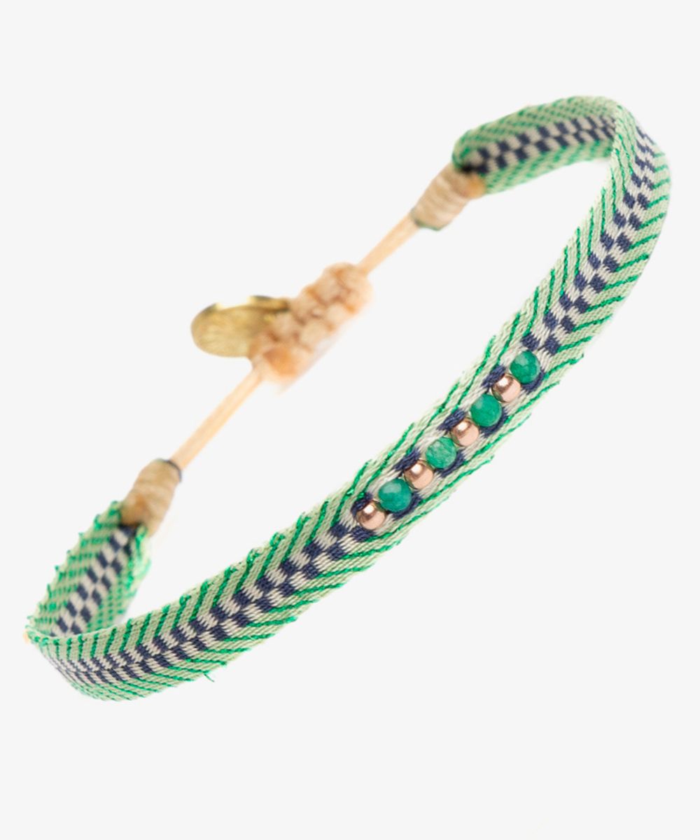 Guanábana da un giro a su tradicional ARGANTINA y la convierte en un accesorio brillante y colorido, con cuentas de piedras semipreciosas que aportan sofisticación a la pulsera. La argantina ALAMEIN está tejida a mano por artesanas usando un telar manual y acabada con un cierre ajustable y una medallita en bronce con nuestro mantra para que no lo olvides: BE POSITIVE.