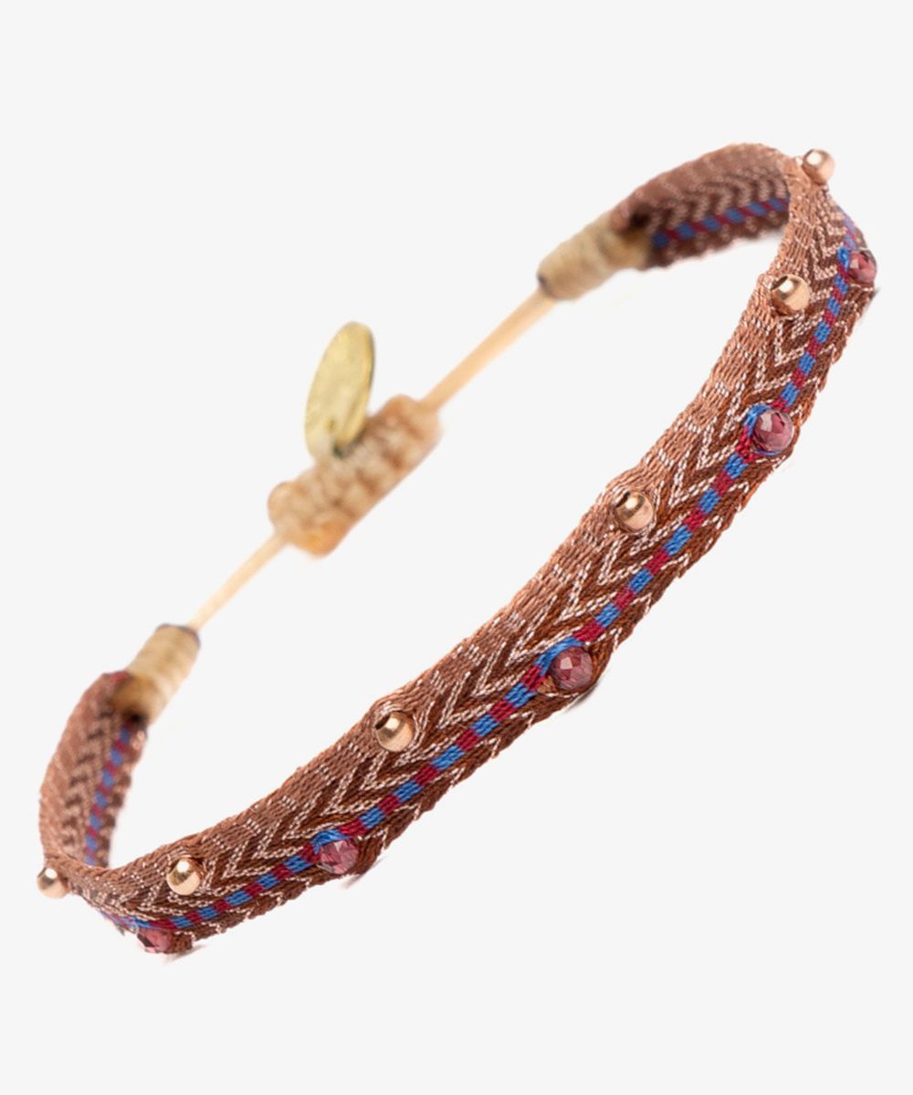 Guanábana da un giro a su tradicional ARGANTINA y la convierte en un accesorio brillante y colorido, con cuentas de piedras semipreciosas que aportan sofisticación a la pulsera. La argantina ALAMEIN está tejida a mano por artesanas usando un telar manual y acabada con un cierre ajustable y una medallita en bronce con nuestro mantra para que no lo olvides: BE POSITIVE.