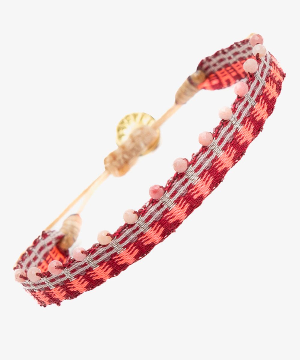 Guanábana da un giro a su tradicional ARGANTINA y la convierte en un accesorio brillante y colorido, con cuentas de piedras semipreciosas que aportan sofisticación a la pulsera. La argantina ALAMEIN está tejida a mano por artesanas usando un telar manual y acabada con un cierre ajustable y una medallita en bronce con nuestro mantra para que no lo olvides: BE POSITIVE. Piedra: adornada con cuentas