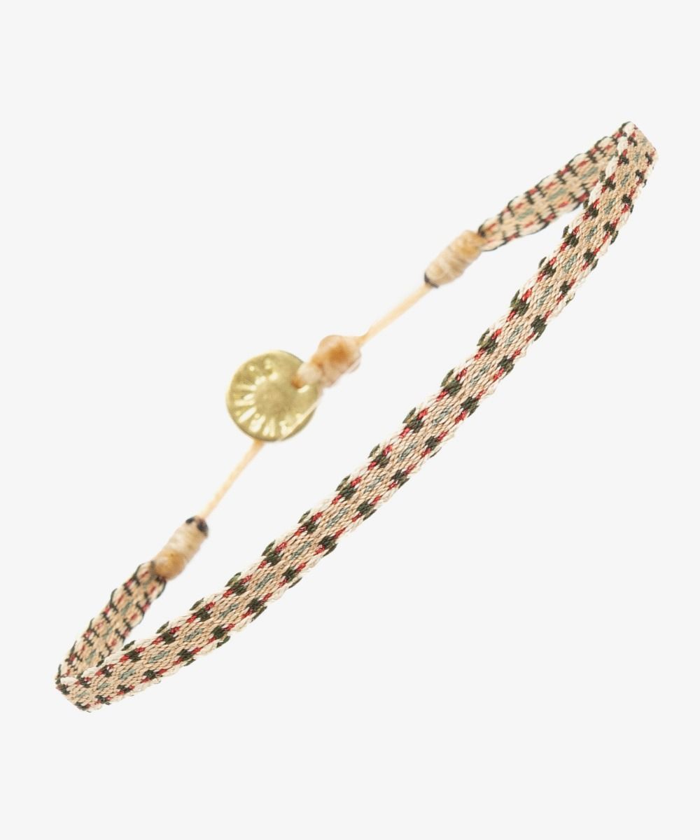 Esta pulsera está diseñada en nuestras oficinas centrales de Madrid. Tejida en un telar manual por artesanos en Colombia, utilizando técnicas antiguas. Cada pulsera está tejida con 40 hilos y cuenta con un cierre para ajustarla a la muñeca. Nuestro consejo: Puedes llevarla sola o mezclándola con varias más!
