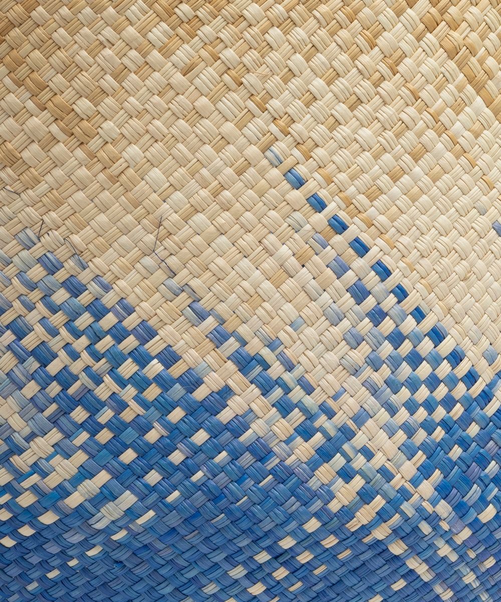 Materiales: - 100% paja de iraca - Medallón de latón Dimensiones: - Altura: 33 cm (12,9 pulgadas) - Longitud de las asas: 15 cm (5,9 pulgadas) - Diámetro de la abertura: 107 cm (42,1 pulgadas) Cada canasto es único y está hecho a mano, por lo que puede haber ligeras variaciones de forma o tamaño. No se puede lavar a máquina; lavar con un paño húmedo.