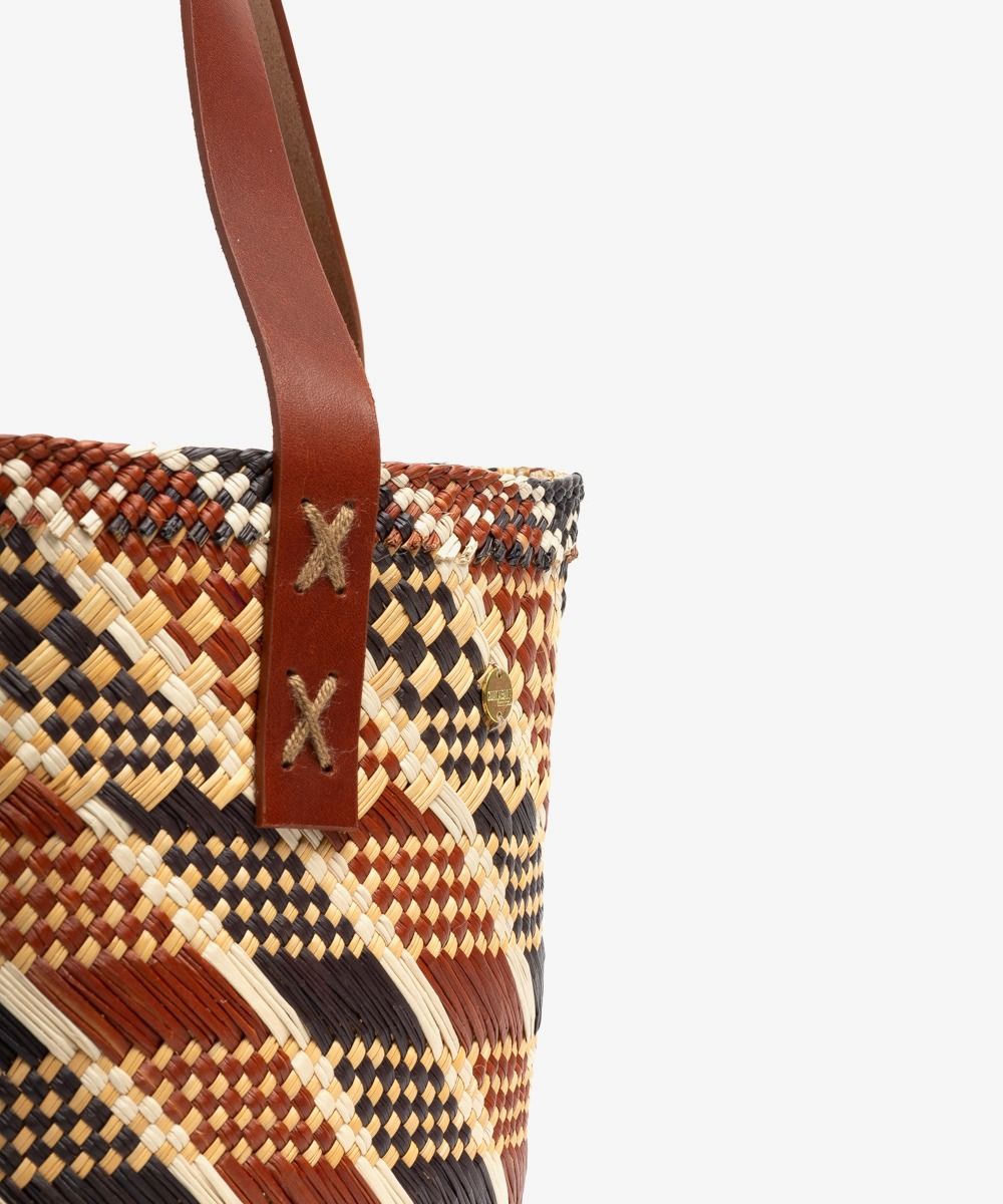 Nuestros complementos están hechos a mano por artesanas utilizando la técnica de tejido en iraca, típica de la tradición colombiana. La iraca, o paja toquilla, es una fibra natural que proviene de la “Carludovica palmata”, de cuyas hojas se obtienen unos finos hilos que son teñidos para darles color. Una vez secos, los artesanos entretejen los hilos con los diferentes colores para crear nuestros cestos.