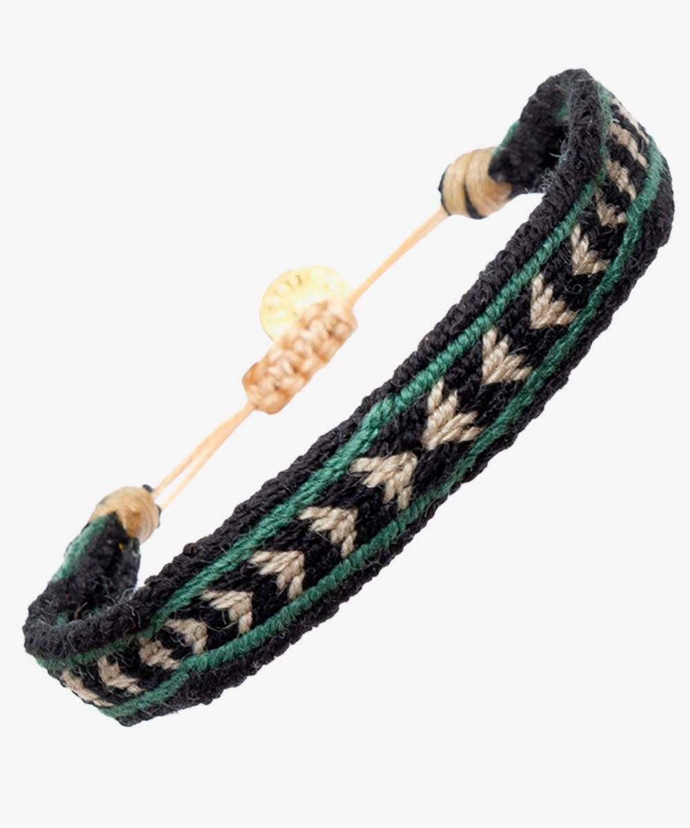 Add a vibrant touch of colour to your look with the CAPTAIN bracelet, an original creation by Guanábana. The colourful geometric patterns are designed in Madrid and our bracelets are entirely hand-woven by Colombian artisans. The opening of the bracelet adjusts to your wrist and is adorned with a medallion on which is inscribed our mantra: Be positive!