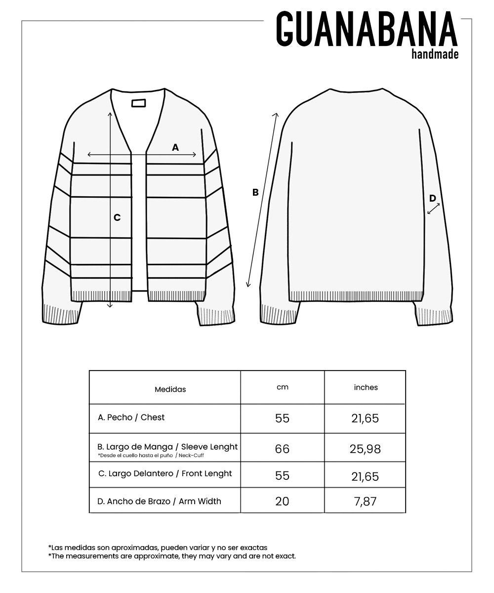 Composición: - 70% baby alpaca - 7% Lana merino - 23% Poliamida reciclada Cuidados y mantenimiento: - Admite lavado a mano en agua fría con detergente para prendas delicadas - No usar blanqueadores - No usar secadora - Secar en horizontal - Planchar a temperatura baja - Limpieza en seco salvo tricloroetileno Con el uso y la fricción con otras prendas, etiquetas interiores o bolsos/cinturones/accesorios es habitual que en la prenda aparezca bolitas (pilling). Puedes retirarlas usando un quitapelusas eléctrico o utilizando con cuidado una cuchilla. Te recomendamos que si te surge alguna consulta, antes de realizar ninguna acción por tu cuenta, te pongas en contacto con contact@guanabana.es para tratar de resolverla juntos.