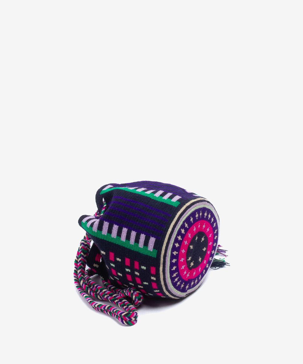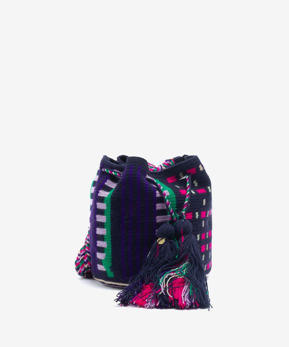 Gracias a las manos de cientos de mujeres Wayuu en Colombia y a los diseñadores de GUANÁBANA en Madrid, nuestro bolso clásico se presenta en una versión más pequeña. Tejido a mano por artesanas en Colombia, los colores y patrones de este bolso, y su asa larga, lo convierten en un imprescindible que puedes usar en cualquiera ocasión. Revisa su base y admira las diferencias que trae cada uno de ellos. Este bolso cierra con dos pompones tejidos y nuestro sello en bronce con el leitmotiv de GUANABANA: BE POSITIVE.