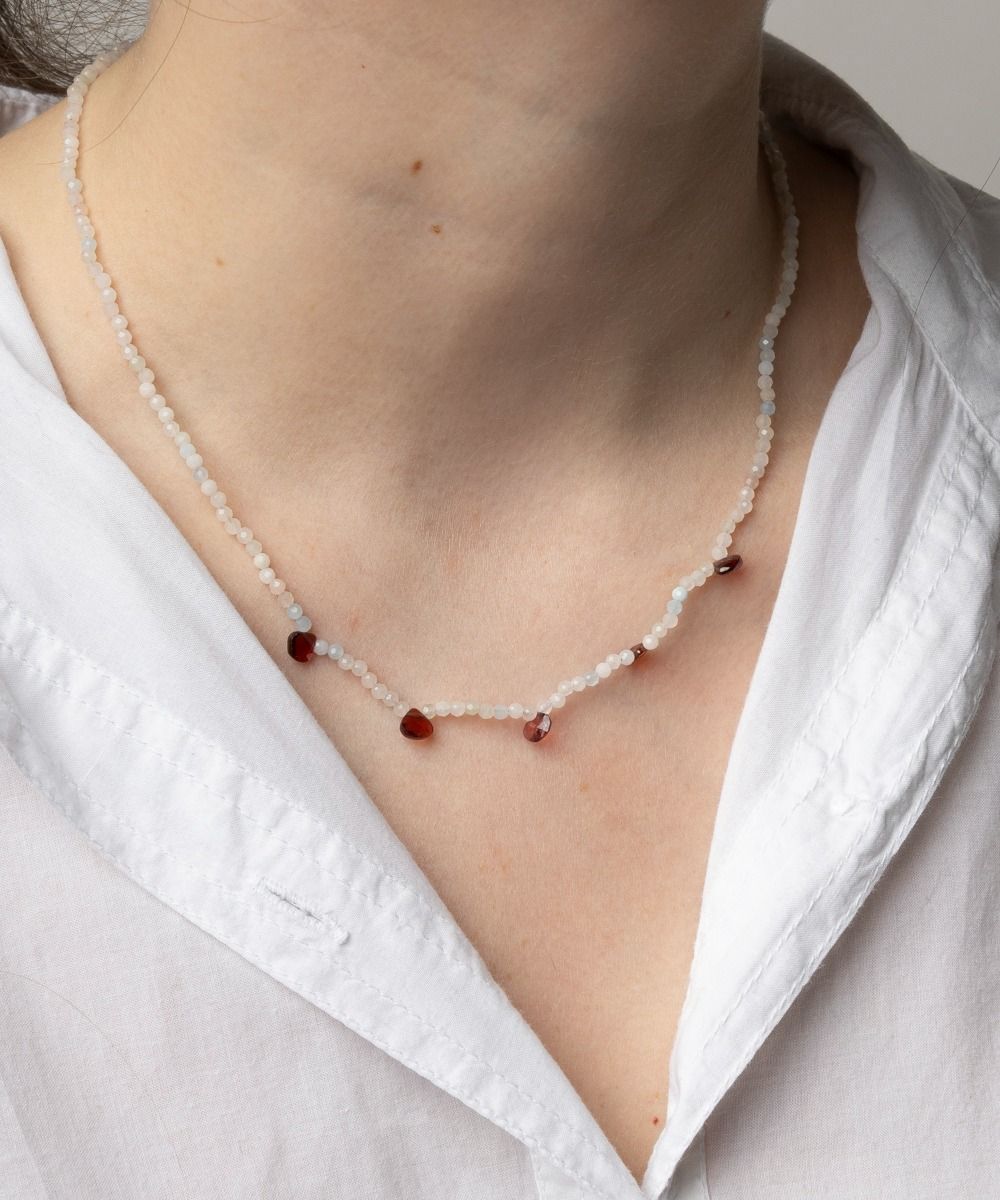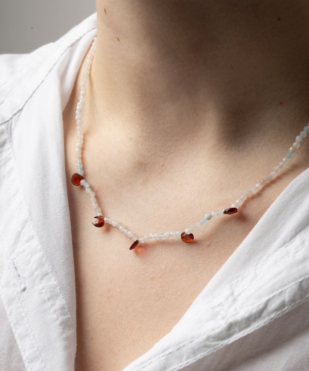 Delicado y femenino, un complemento con un toque étnico que rematará cualquier look, tanto en verano como en invierno. Este diseño exclusivo de Guanábana tiene 5 gotas de piedras semipreciosas, dando un toque moderno y diferente al collar. Nuestro consejo: puedes combinar collares de diferentes largos para crear tu propio atuendo. Nuestro consejo: puedes combinar collares de diferentes largos para crear tu propio atuendo.