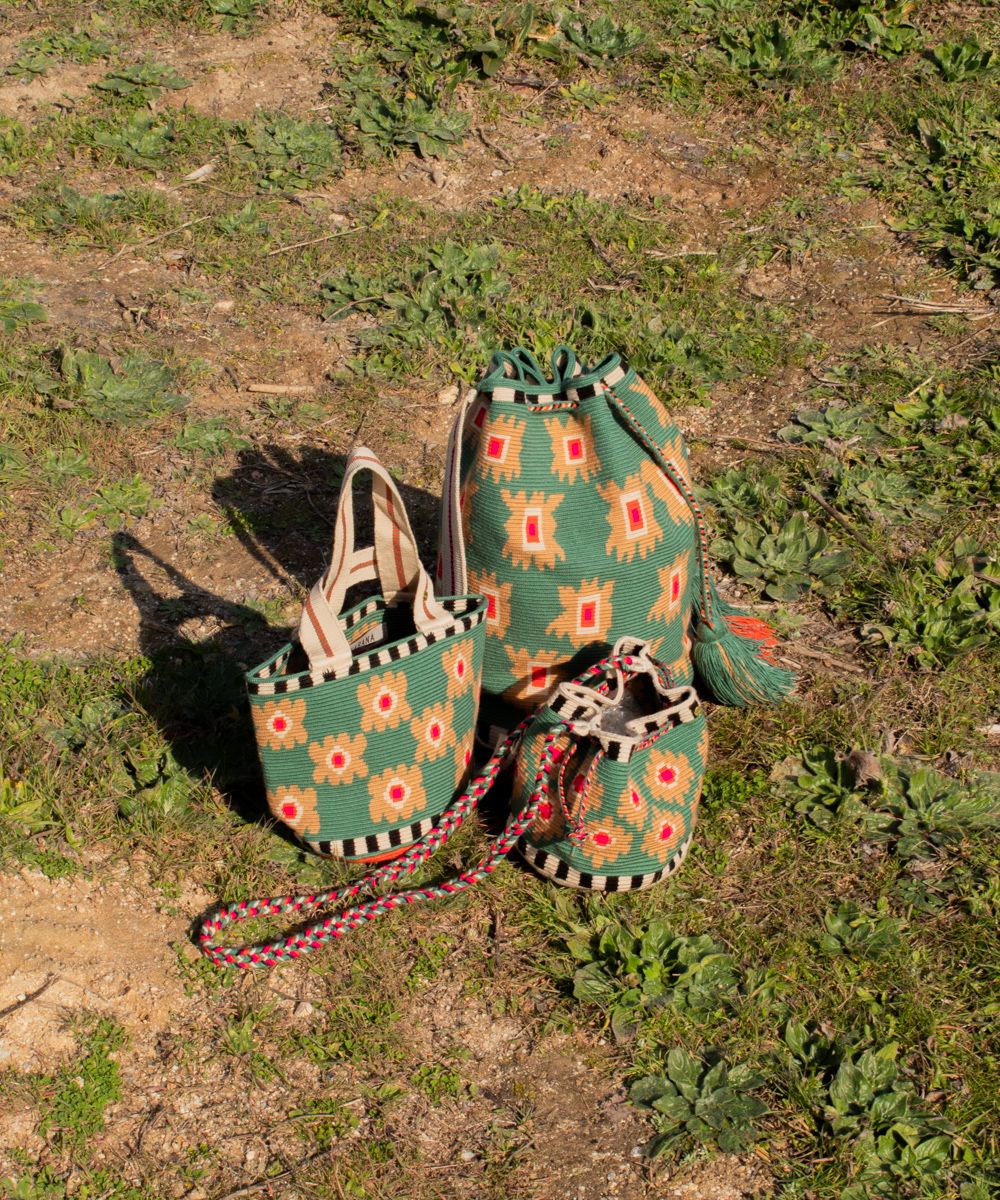DISEÑADO EN MADRID - 100% HECHO A MANO POR ARTESANAS EN COLOMBIA. GUANÁBANA CREE EN LAS PEQUEÑAS DIFERENCIAS: LOS TAMAÑOS Y DISEÑOS PUEDEN TENER LIGERAS VARIACIONES CON EL MODELO DE LA FOTO.