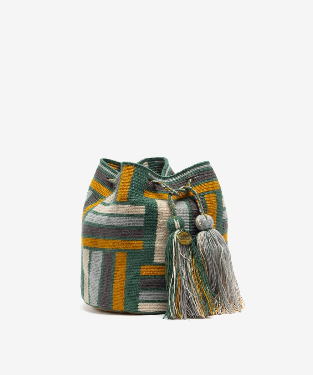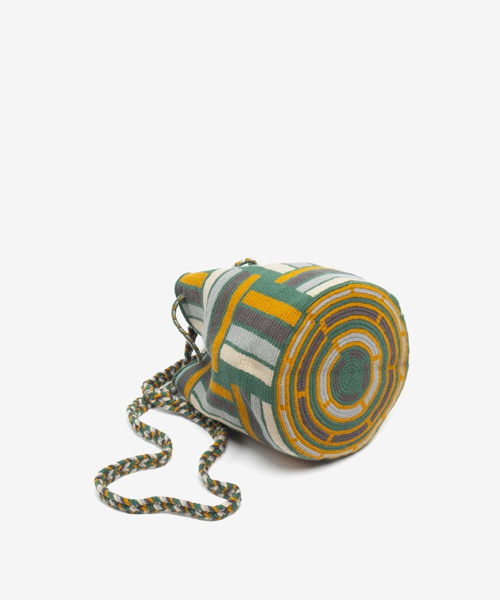 DISEÑADO EN MADRID - 100% HECHO A MANO POR ARTESANAS EN COLOMBIA. GUANÁBANA CREE EN LAS PEQUEÑAS DIFERENCIAS: LOS TAMAÑOS Y DISEÑOS PUEDEN TENER LIGERAS VARIACIONES CON EL MODELO DE LA FOTO. LAVADO A MÁQUINA EN AGUA FRÍA. Material: 100% acrílico Dimensión aproximada: Altura: 20 cm Diámetro: 20 cm Asa: 115cm