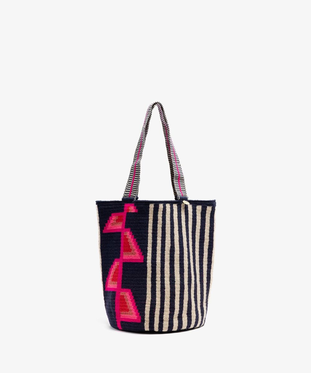 Gracias a las manos de cientos de mujeres Wayuu en Colombia y a los diseñadores de GUANÁBANA en Madrid, nuestro bolso clásico se presenta en una versión más pequeña. Tejido a mano por artesanas en Colombia, los colores y patrones de este bolso, y su asa larga, lo convierten en un imprescindible que puedes usar en cualquiera ocasión. Revisa su base y admira las diferencias que trae cada uno de ellos. Este bolso cierra con dos pompones tejidos y nuestro sello en bronce con el leitmotiv de GUANABANA: BE POSITIVE.
