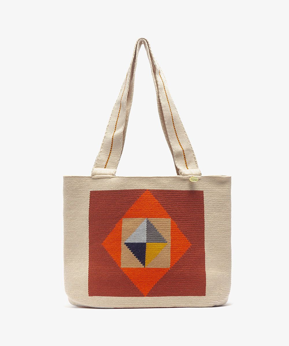 Diseñado exclusivamente por GUANABANA, este modelo representa el primer gran salto de la comunidad Wayuu en Colombia para atreverse a cambiar el modelo de la mochila original. El resultado es este sorprendente y funcional bolso cuya asa está tejida en un tamaño particular para ser llevado a mano o colgado en el hombro. Todos los bolsos llevan nuestro característico sello en bronce con el leitmotiv de GUANABANA: BE POSITIVE.