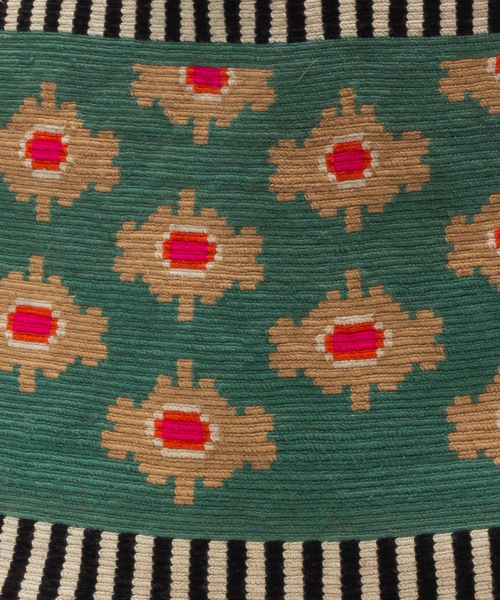 Diseñado exclusivamente por GUANABANA, este modelo representa el primer gran salto de la comunidad Wayuu en Colombia para atreverse a cambiar el modelo de la mochila original. El resultado es este sorprendente y funcional bolso cuya asa está tejida en un tamaño particular para ser llevado a mano o colgado en el hombro. Todos los bolsos llevan nuestro característico sello en bronce con el leitmotiv de GUANABANA: BE POSITIVE.