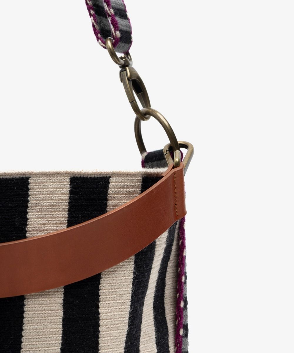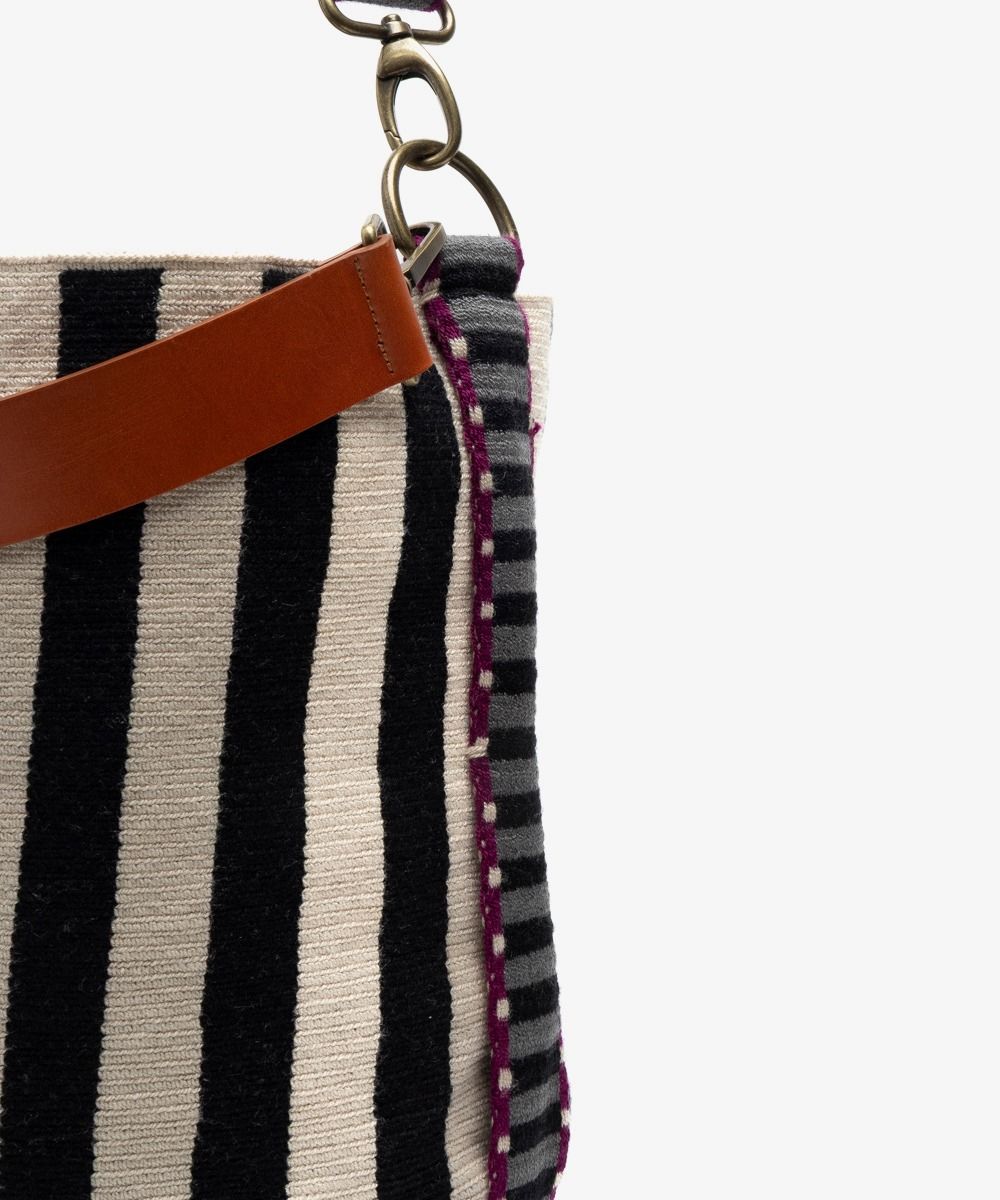 Siempre en busca de la innovación, Guanábana combina la tradición del tejido a mano con la vida urbana en esta edición exclusiva del bolso Sofía, diseñado en Madrid y tejido en telares manuales en Colombia por expertas artesanas. Esta versión única incorpora un asa ajustable para mayor comodidad y un asa de cuero que permite llevarlo elegantemente como bolso de mano, aportando versatilidad y estilo a cualquier look. Cada pieza está rematada con una etiqueta de bronce grabada con nuestro mantra para que nunca lo olvides: BE POSITIVE. Como todos nuestros diseños, el Sofía es una creación exclusiva de Guanábana. Nuestro consejo: si te enamoras de un bolso Sofía, no lo dejes escapar, ya que se trata de un modelo de edición exclusiva. Ten en cuenta que la base del bolso puede variar respecto a la de la imagen. Nuestras artesanas tejen las bases siguiendo sus propios diseños, lo que convierte cada bolso en una pieza única, reflejo de su identidad y arte personal.