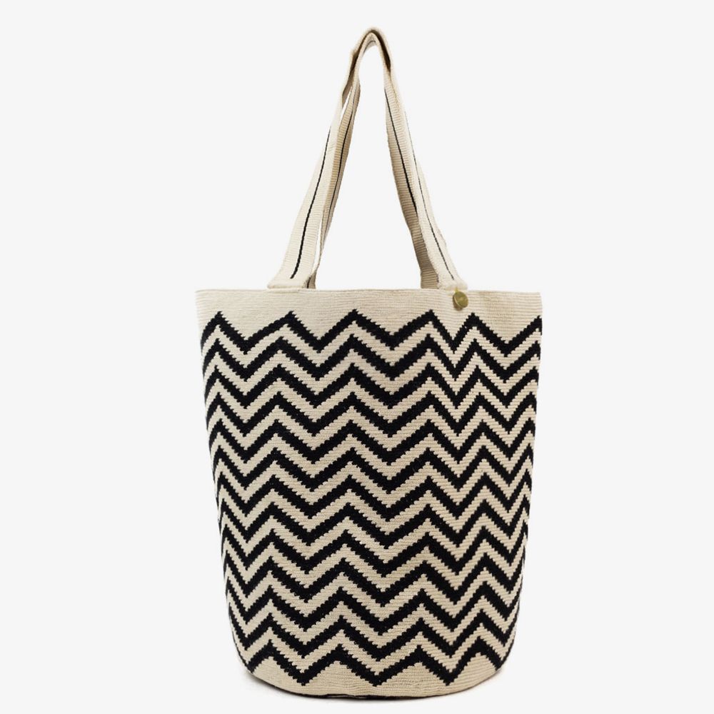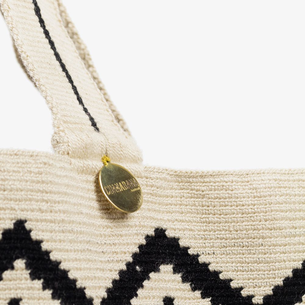 Guanábana reinventa el clásico tote bag y le da un toque boho-chic con sus diseños geométricos y vibrantes, creados en Madrid y hechos a mano por las Wayuu en Colombia. La puntada de este modelo, tejido en crochet, es más suelta para hacerlo más ligero y fácil de llevar. Tiene un asa tipo banda para llevarlo al hombro, por lo que es ideal para el trabajo, la universidad o incluso la playa. Acabado con una medallita de bronce con nuestro mantra para que no lo olvides: BE POSITIVE. Este bolso es un diseño exclusivo de Guanábana.