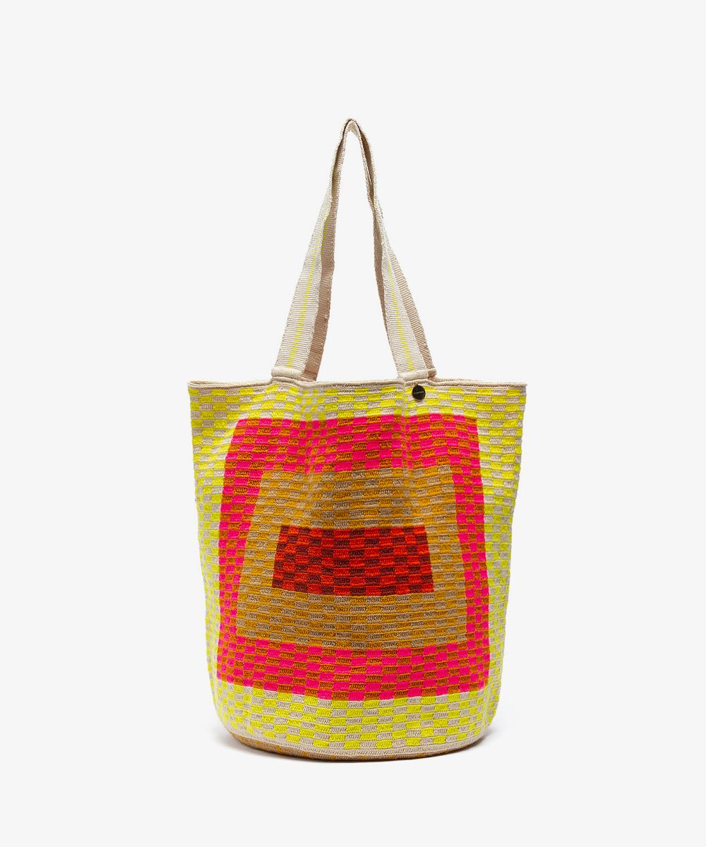 GUANABANA ha retomado el clásico bolso de las compras y le ha añadido fantásticos diseños geométricos y vibrantes colores que le dan ese aire chic y bohemio absolutamente irresistible. Diseñado en Madrid y tejido a mano por artesanas Wayuu en Colombia, este bolso tiene un punto más suelto y un asa larga y cómoda que lo hacen esencial. El resultado: un bolso unisex todo-terreno, que no vas a querer soltar jamás. Todos los bolsos llevan nuestro característico sello en bronce con el leitmotiv de GUANABANA: BE POSITIVE.