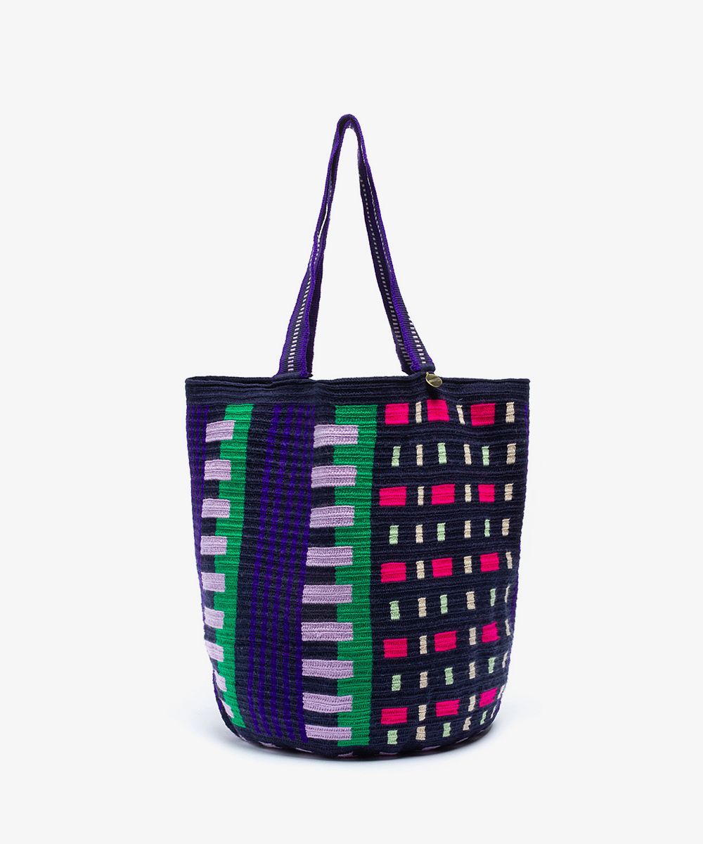 GUANABANA ha retomado el clásico bolso de las compras y le ha añadido fantásticos diseños geométricos y vibrantes colores que le dan ese aire chic y bohemio absolutamente irresistible. Diseñado en Madrid y tejido a mano por artesanas Wayuu en Colombia, este bolso tiene un punto más suelto y un asa larga y cómoda que lo hacen esencial. El resultado: un bolso unisex todo-terreno, que no vas a querer soltar jamás. Todos los bolsos llevan nuestro característico sello en bronce con el leitmotiv de GUANABANA: BE POSITIVE.
