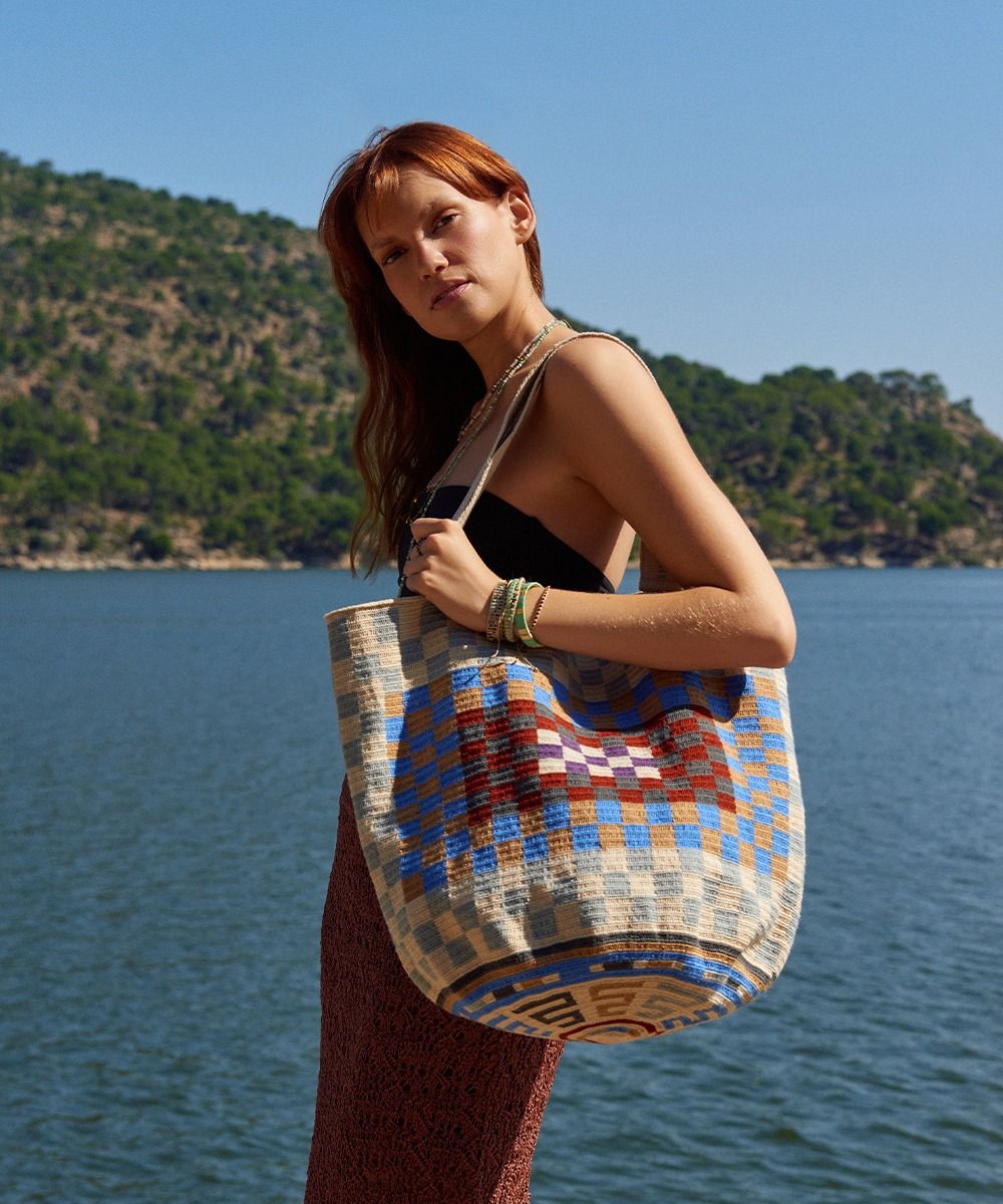 DISEÑADO EN MADRID - 100% HECHO A MANO POR ARTESANAS EN COLOMBIA. GUANÁBANA CREE EN LAS PEQUEÑAS DIFERENCIAS: LOS TAMAÑOS Y DISEÑOS PUEDEN TENER LIGERAS VARIACIONES CON EL MODELO DE LA FOTO. LAVADO A MÁQUINA EN AGUA FRÍA. Material: 100% acrílico Dimensión aproximada: Altura: 38 cm Diámetro: 31 cm Asa: 54 cm