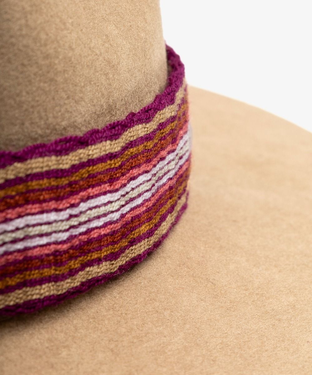 Personaliza tus looks con nuestros sombreros, diseñados exclusivamente por el equipo de Guanábana en Madrid. Sombreros de lana hechos a mano. Decorado con una de nuestras bandas de sombreros especiales y atemporales, que mezcla las últimas tendencias con estampados de inspiración étnica y un toque boho chic.